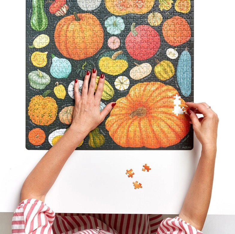 Ponorte sa do zlatej jesennej nálady s puzzle Puzzlove Tekvice. Desiatky pôsobivých tekvíc priamo z poľa vytvárajú detailnú, estetickú scénu, ktorá poteší milovníkov dizajnu aj skladania. 1000 dielikov ponúka príjemnú mieru náročnosti a odmení vás krásnym obrazom, ktorý môžete zarámovať a vystaviť.