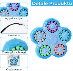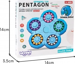 Woopie Magic Beans Puzzle Pentagon v tvare päťlístkového kvetu spája relax a múdru zábavu. Farebné guličky sa pohybujú po dráhach po aj proti smeru hodinových ručičiek, čo poskytuje nespočet možností usporiadania. Kompaktné rozmery umožňujú zobrať hračku kamkoľvek – do školy, do práce aj na cesty.
