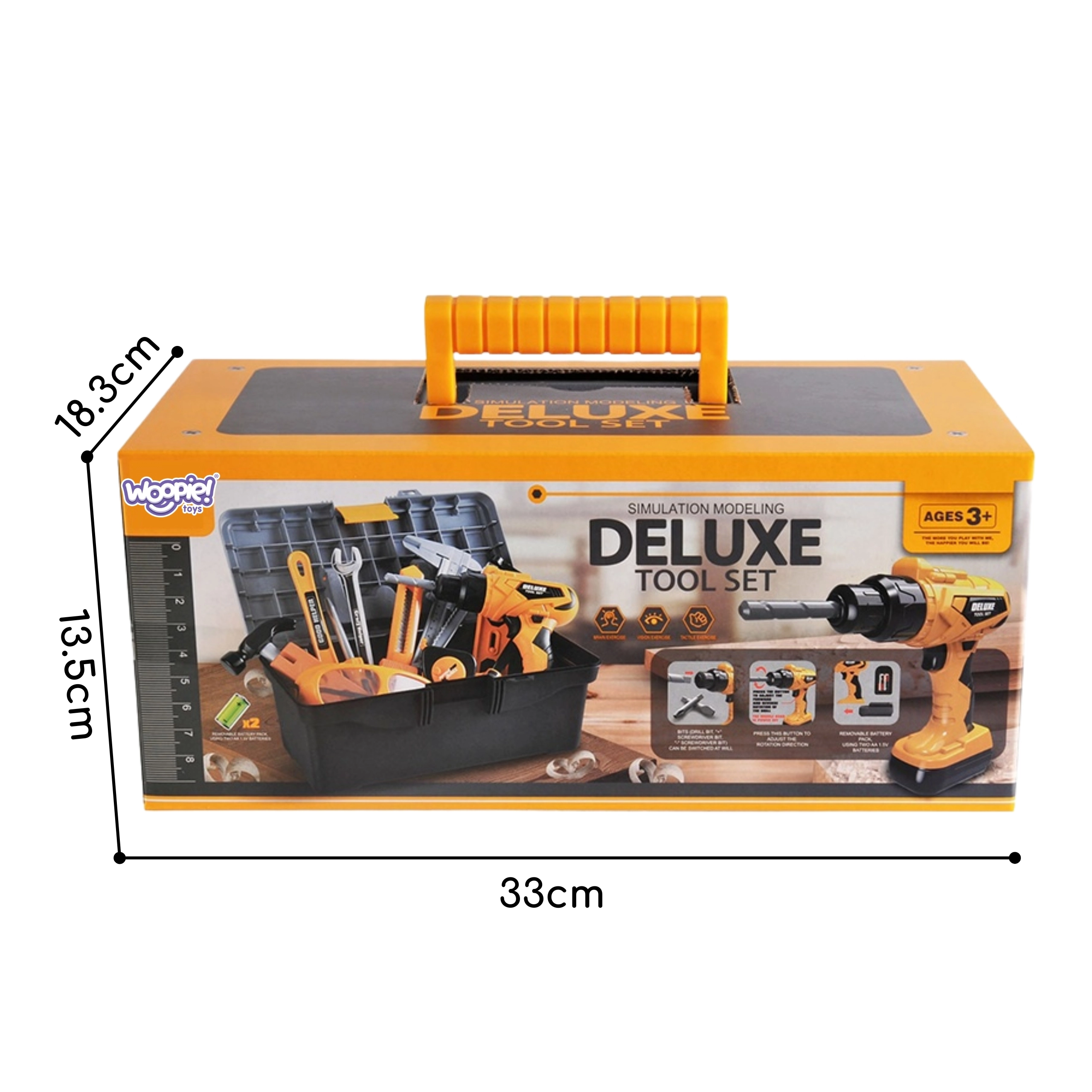 Sada náradia pre malého kutila Woopie premení každú izbu na mini dielňu. Deti môžu napodobňovať dospelých, skrutkovať, vŕtať a skladať pomocou bohatej sady príslušenstva. Elektrická aku vŕtačka s funkciou zmeny smeru otáčania a vymeniteľnými nadstavcami (vrátane nadstavca typu „priamočiara píla“ a držiaka bitov) dodáva hre na autentickosti.