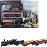 Táto štýlová detská vlaková súprava prináša realistické detaily lokomotívy aj vagónov a množstvo možností pre voľnú hru. Vďaka väčšej hracej ploche 103 × 67 cm si deti ľahko postavia vlastné koľajisko a vydajú sa na dobrodružné jazdy s nákladom aj pasažiermi.