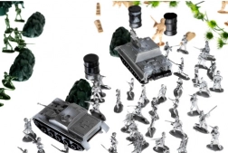 - Vojačikovia (4 farby), tanky, lietadlá, delá, budovy, zátarasy, stromy, vlajky a ďalšie príslušenstvo