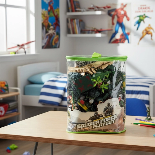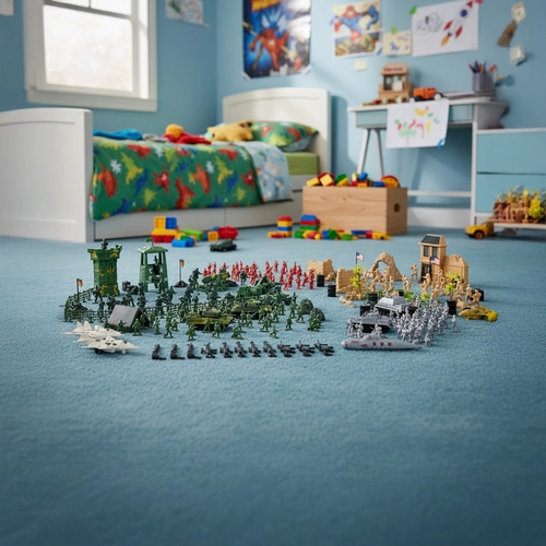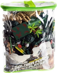 Veľká sada s až 300 dielmi pre kreatívne vojenské scenáre: vojačikovia v rôznych farbách, tanky, lietadlá, delá, budovy a doplnky. Odolné plastové figurky v mierke cca 1:40, všetko uložené v praktickom púzdre na zips s uchom pre ľahké prenášanie. Skvelý darček na rozvoj fantázie, kreativity a strategického myslenia.