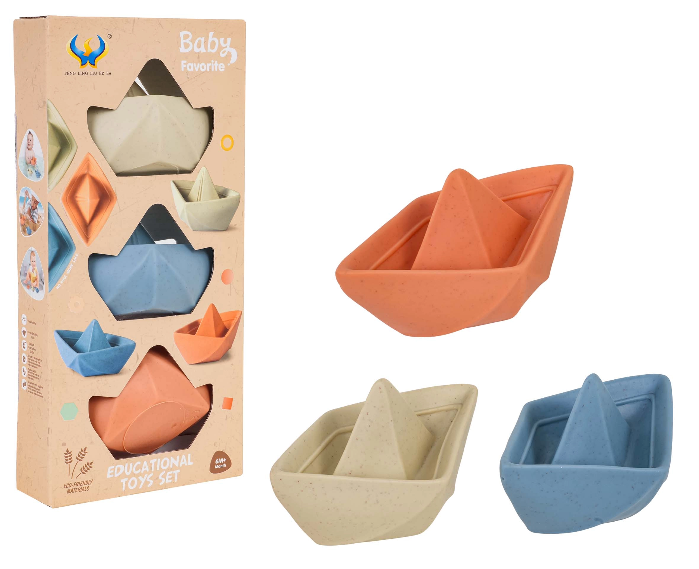Táto sada troch roztomilých lodičiek prináša deťom veľa zábavy počas kúpaní aj hier na suchu. Odolný, na dotyk príjemný materiál bez škodlivín je šetrný k detskej pokožke a ľahko sa udržiava. Vďaka skladnému tvaru sa lodičky dajú jednoducho stohovať a upratať.