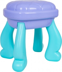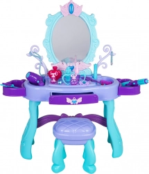 Doprajte deťom ich vlastný kúzelný kozmetický kútik. Tento toaletný stolík v kombinácii tyrkysovej a fialovej farby ponúka veľké oválne zrkadlo s osvetlením, praktickú zásuvku a bočné odkladacie plochy pre všetky doplnky. Stabilná stolička zaistí pohodlné sedenie a bezpečnú hru.