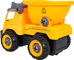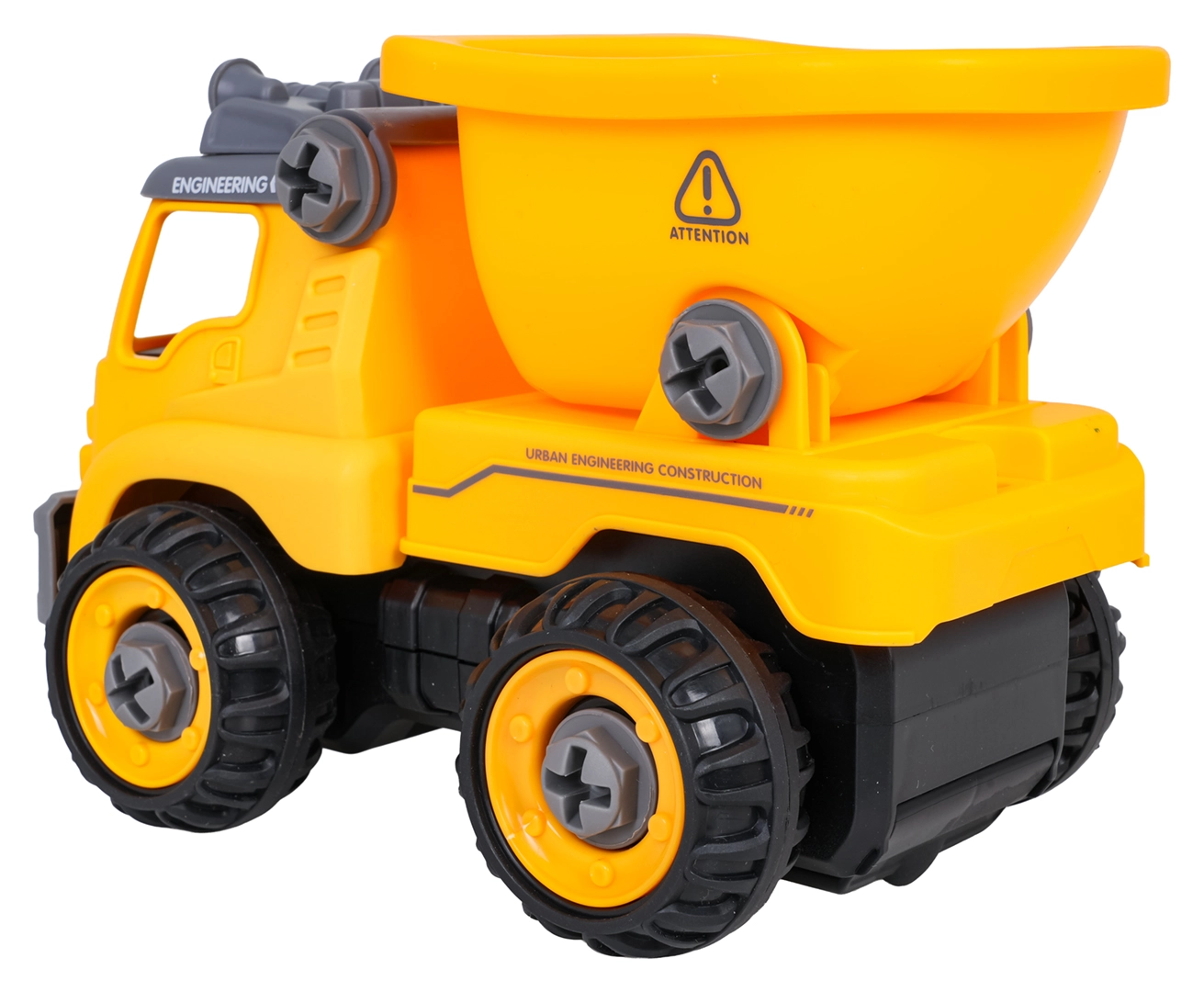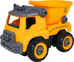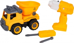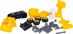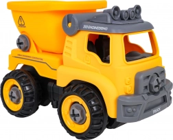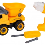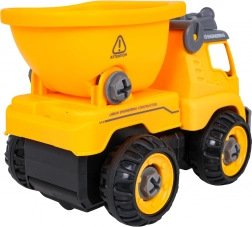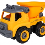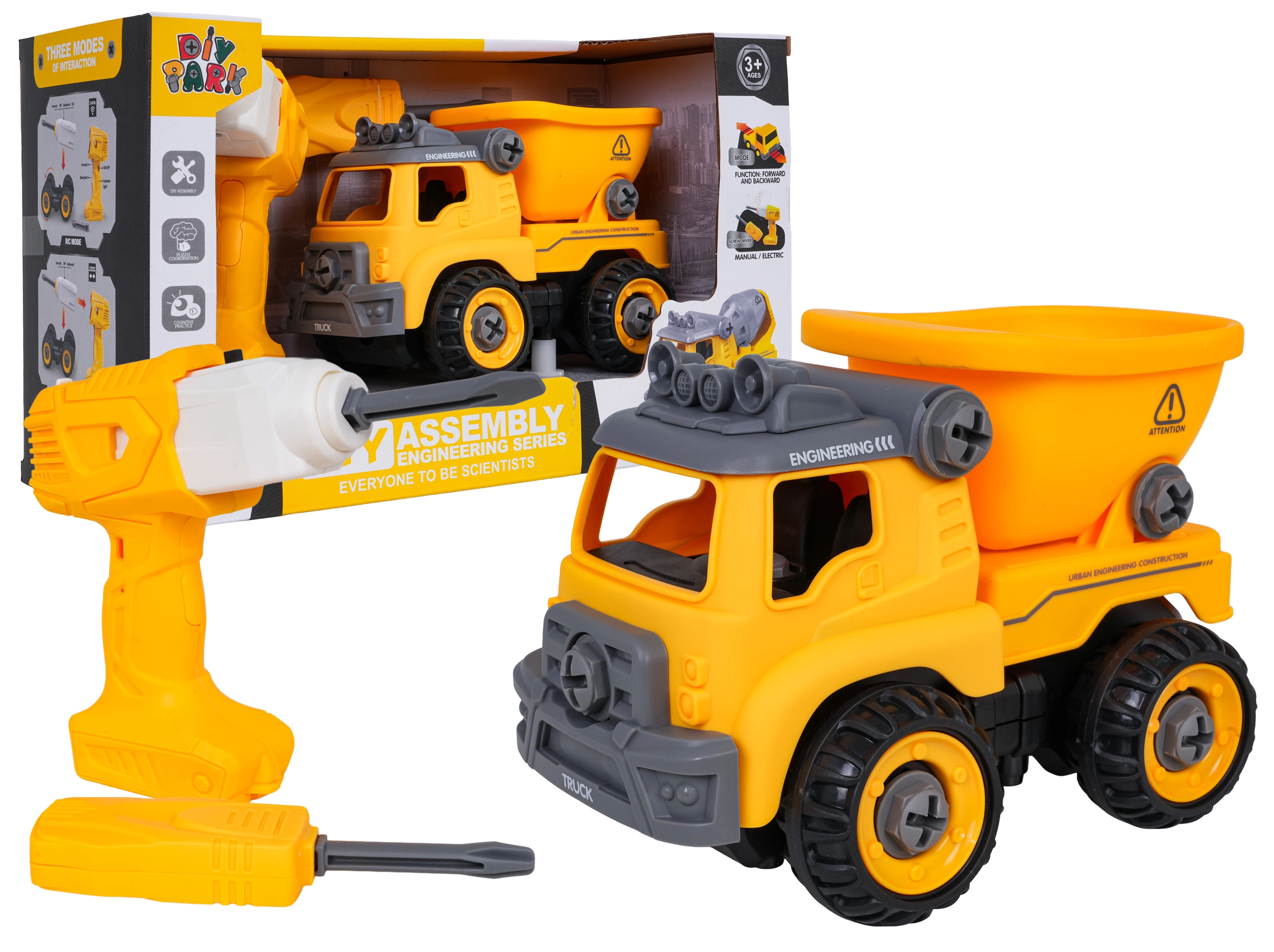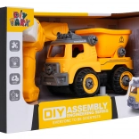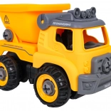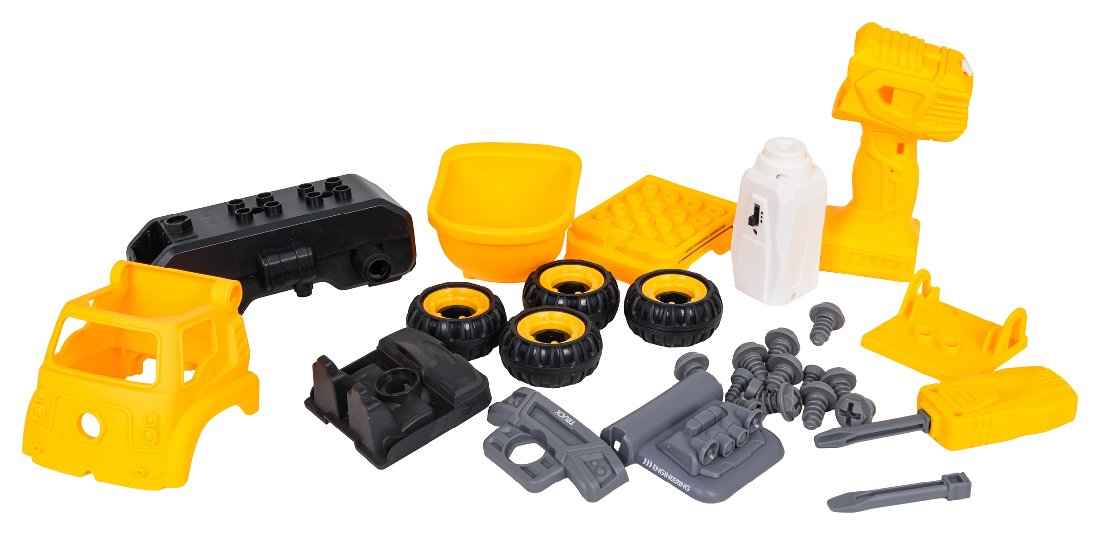 Stavebný sklápač je dodávaný kompletne zložený a pripravený na jazdu. Pomocou priloženej batériovej vŕtačky a ručného skrutkovača ho môžu deti rozobrať na jednotlivé diely a opäť zostaviť. Vozidlo je vyrobené z odolného plastu v živých farbách, takže zvládne každodenné hranie.