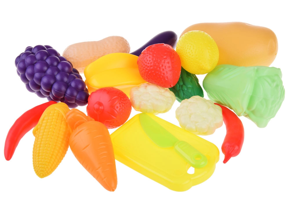 Ovocie, zelenina, doštička, nožík (hra na prípravu jedál)