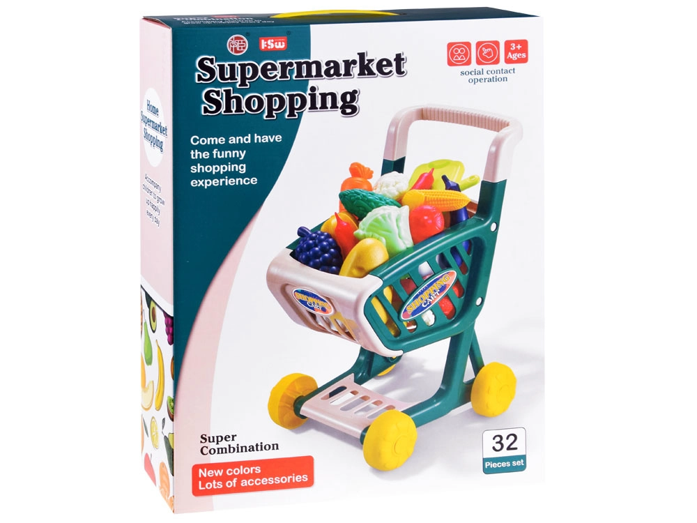 nákupný vozík s ovocím a zeleninou, sada 32 dielov