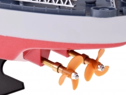 V balení nájdete loď, vysielač 2,4 GHz, akumulátor 7,4 V, USB nabíjačku a stojan – stačí nabiť a môžete vyplávať.
