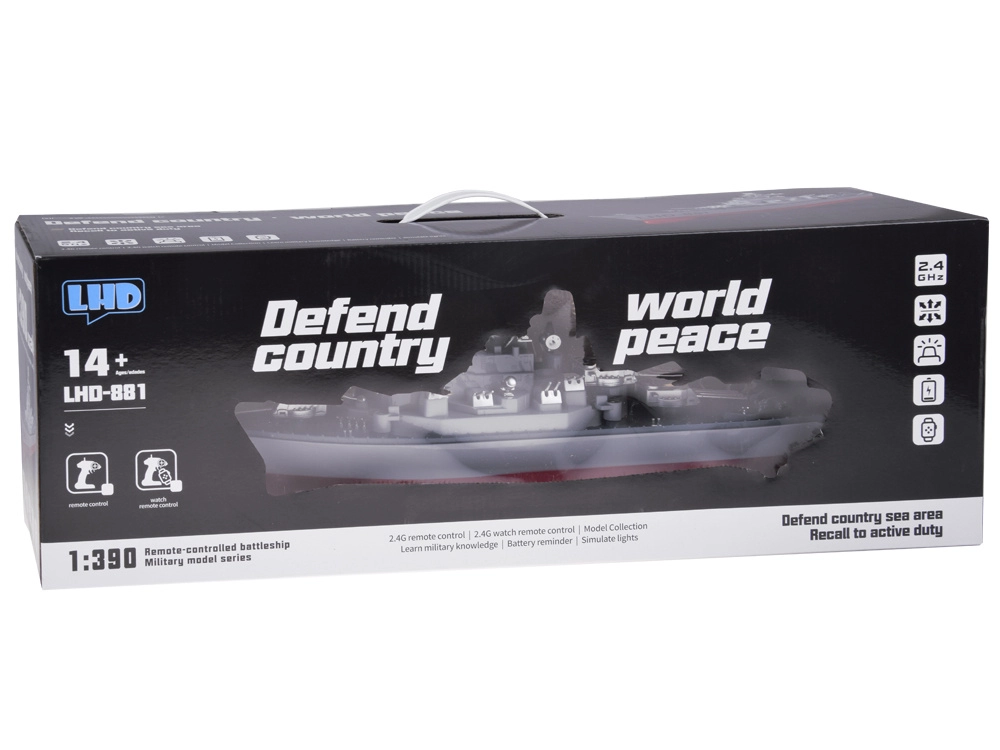 Objavte realistický model na diaľkové ovládanie – bojovú loď LHD-881 v mierke 1:390 s dĺžkou 60 cm. Ponúka rýchlosť až 10 km/h, dosah ovládania cca 100 m, plynulé manévrovanie vpred/vzad a vľavo/vpravo a stabilné riadenie na 2,4 GHz. V balení nechýba akumulátor 7,4 V, USB nabíjanie, vysielač a výstavný stojan – ideálne na plavbu aj ako atraktívny exponát.