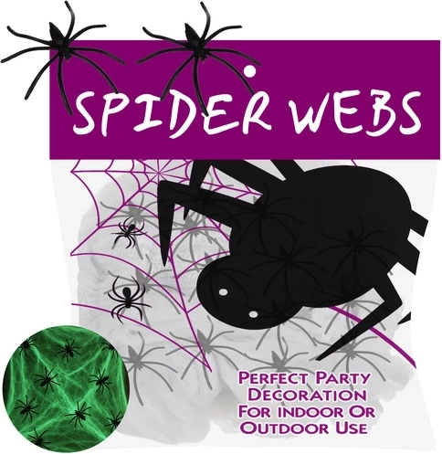 Premeňte svoj domov na desivé brlohy. Pavučinu ľahko rozprestriete na steny, dvere, okná, nábytok alebo do záhrady. Vďaka elastickému materiálu ju prispôsobíte požadovanému tvaru a hustote. Po nasvietení pavučina svieti v tme a vytvára pôsobivý WOW efekt.