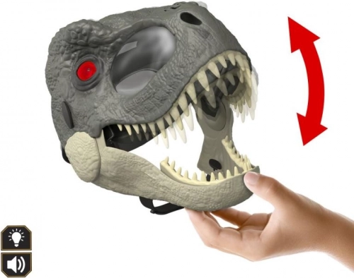 Premeňte sa na svojho obľúbeného dinosaura s touto realistickou maskou T-Rexa! Ponúka LED blikajúce oči, autentické zvuky vrčania a tri úrovne zúrivosti podľa otvorenia tlamy. Vďaka nastaviteľnému pásiku a otvorom pre oči a ústa je maska pohodlná a bezpečná na detské hranie aj kostýmy.