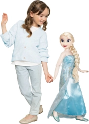 Objavte kúzlo Ľadového kráľovstva s nadrozmernou bábikou Elsa s výškou 86 cm, ktorá očarí detailne spracovanými šatami s vločkami, dlhým blond vrkočom a jemnými rysmi. Vďaka plne kĺbovej konštrukcii sa skvele hýbe, ľahko sedí, pózuje a sprevádza deti pri každom dobrodružstve.