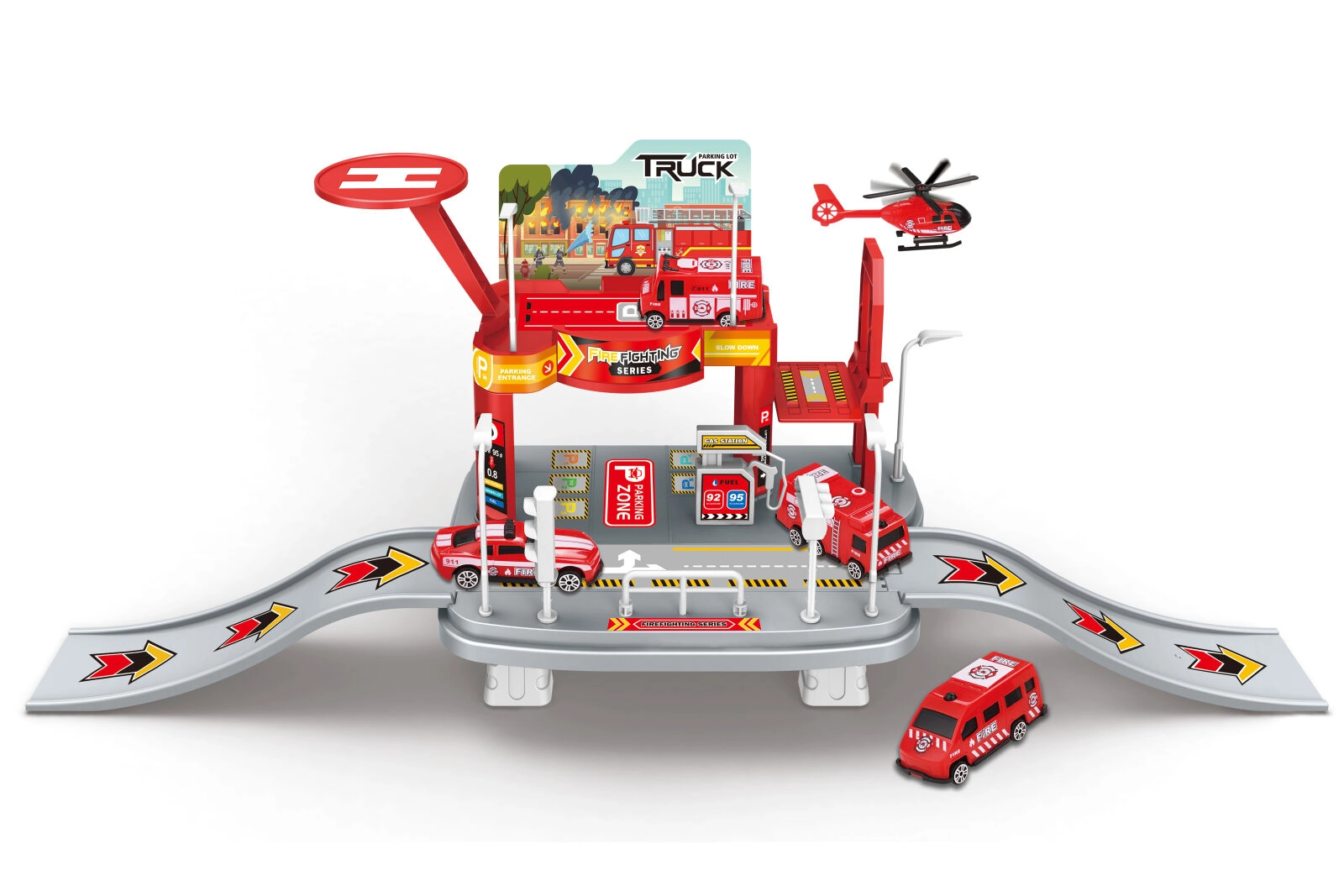 Táto detailne spracovaná hasičská stanica prináša deťom realistickú hru na záchranné akcie. Súčasťou je kompletný park s heliportom, manuálnym výťahom na presun vozidiel medzi poschodiami a čerpacia stanica na doplnenie paliva. Vďaka priloženým značkám si deti ľahko vytvoria vlastné dopravné situácie.