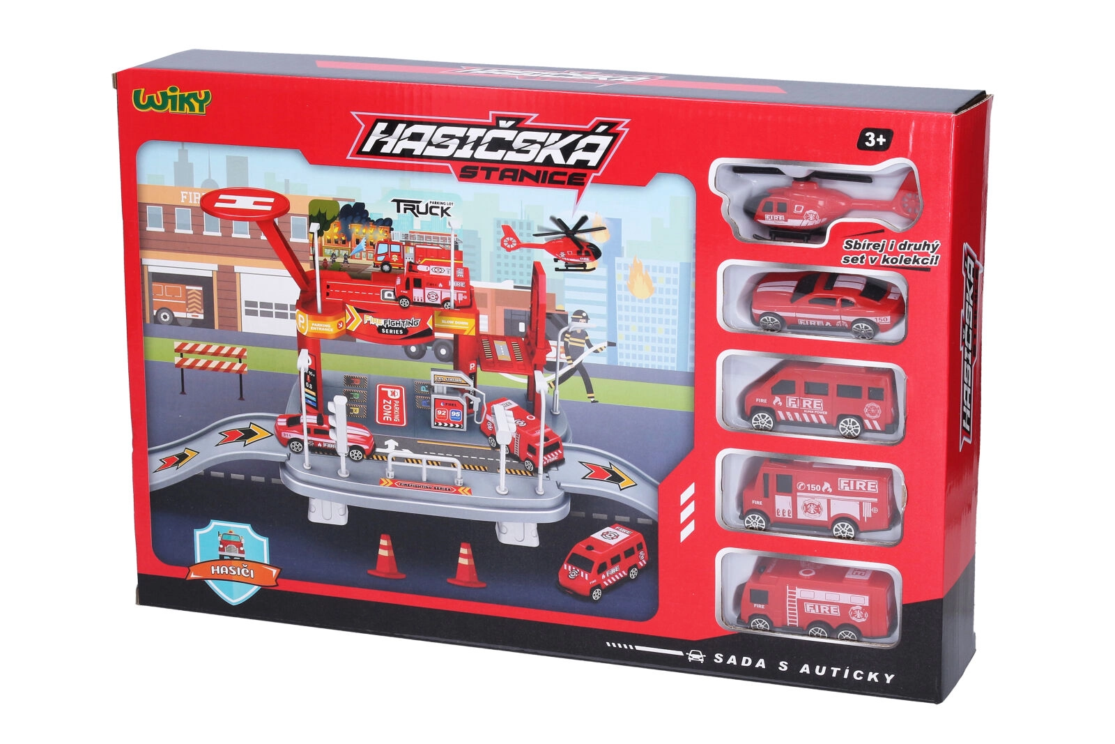 - Kompletný set: hasičská stanica, 4 autá, vrtuľník, heliport, výťah, čerpacia stanica, značky.
