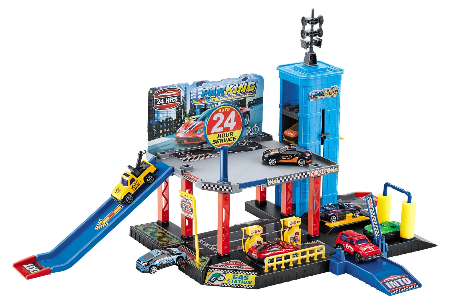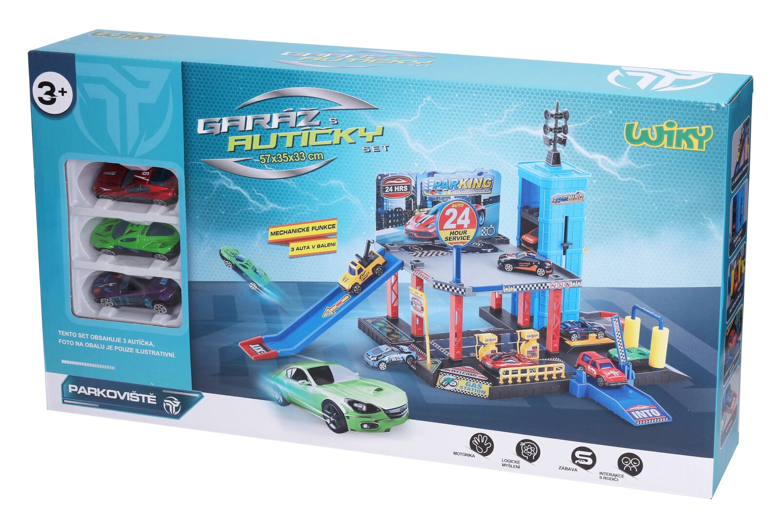 - Kompletná sada na okamžité hranie – garáž, výťah, čerpacia stanica a 3 autíčka