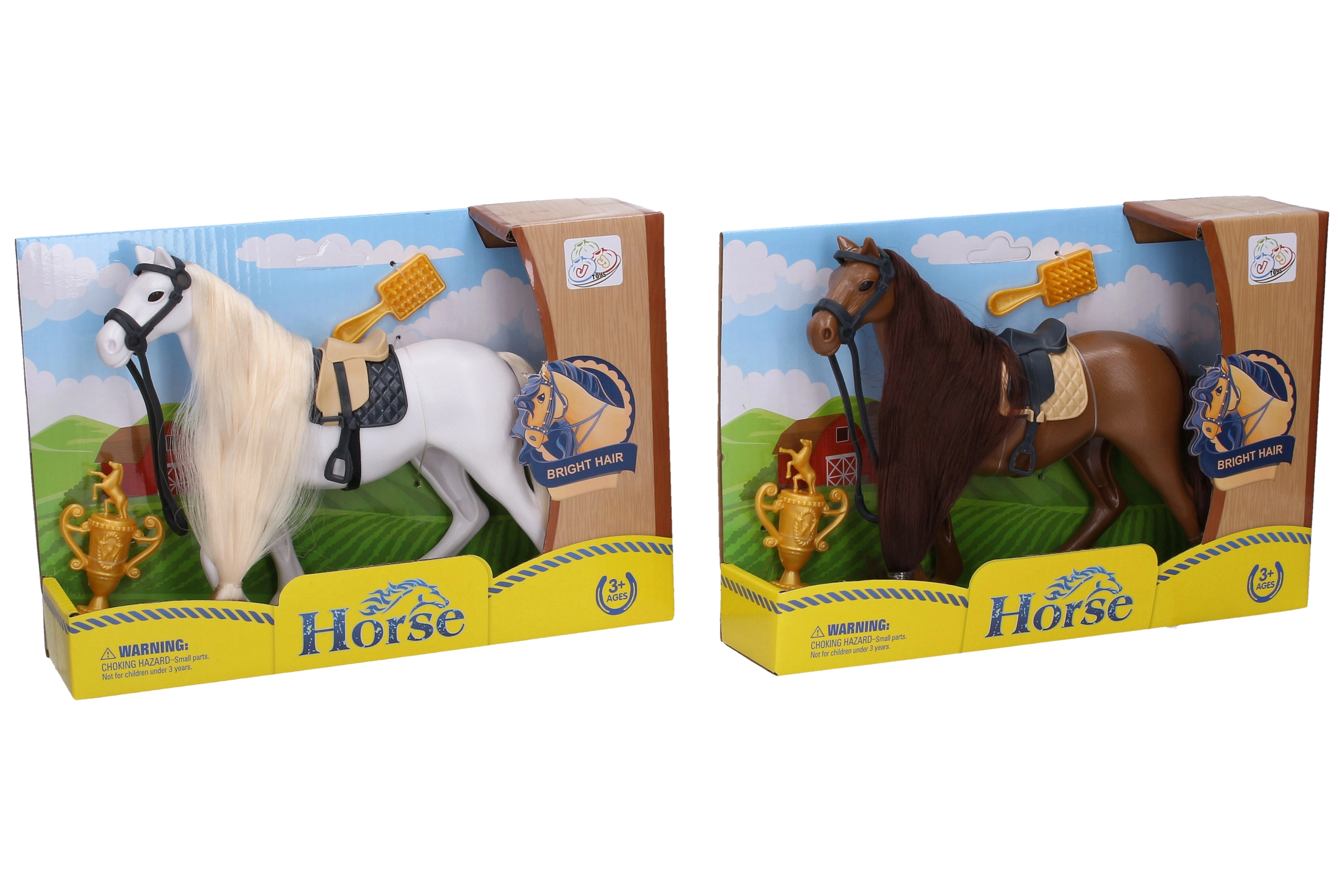 Realistický kôň s veľkosťou 19 cm v dvoch farbách (hnedá a biela) poteší každého malého milovníka koní. Súčasťou balenia je kôň so sedlom a uzdou, trofej a kefka na starostlivosť o hrivu – ideálne na hru na jazdecký klub a rozvoj fantázie.