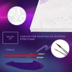 Sada je kompletná – od plátna cez farby až po modelovací nástroj a prehľadný obrázkový návod. Vďaka formátu 30 × 40 cm získate dostatok priestoru na kreatívne vyjadrenie a precízne spracovanie. Obťažnosť 4/5 je skvelá voľba pre mierne pokročilých a pokročilých tvorcov.