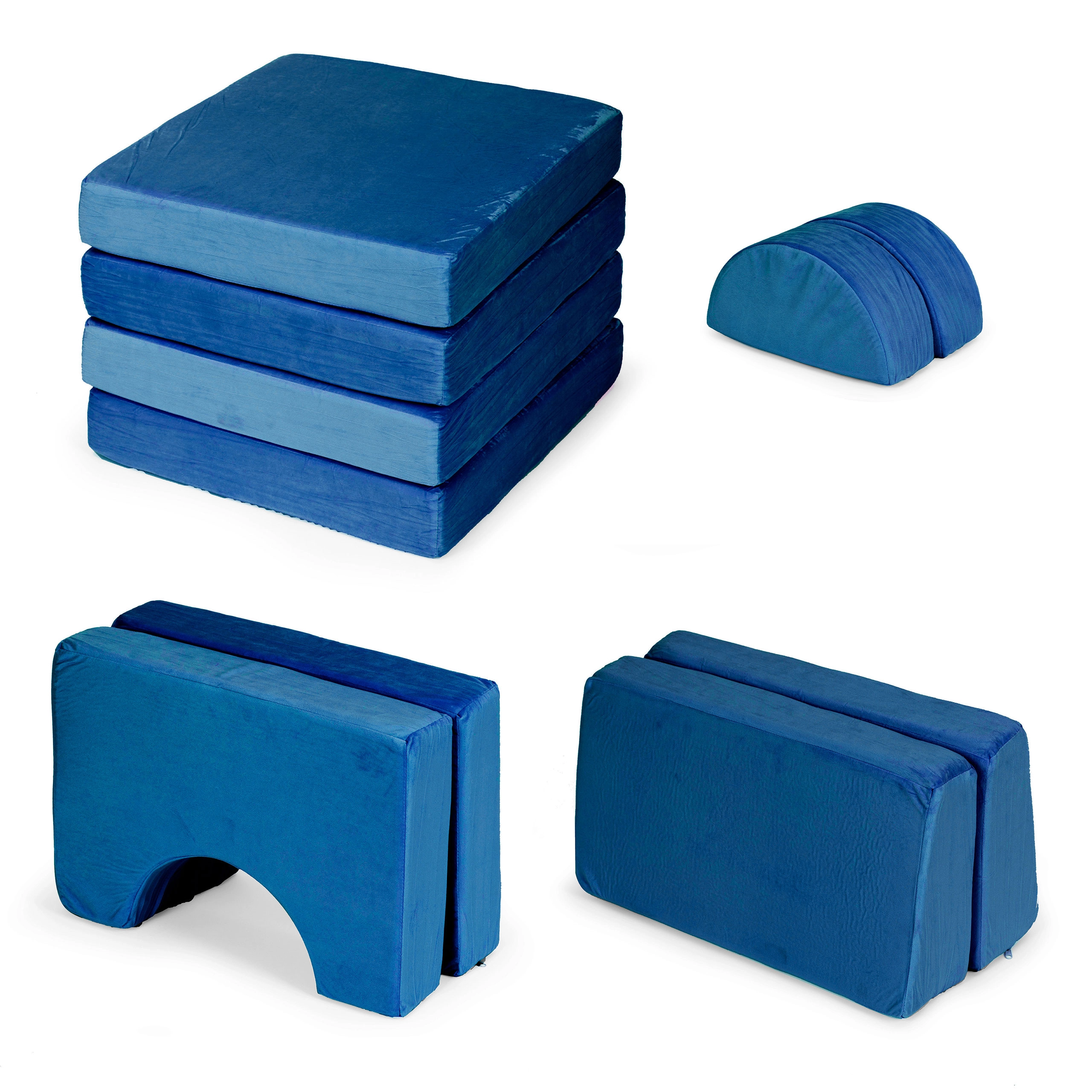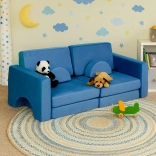 Skladacia modulárna detská pohovka pre 2 deti, 10 vankúšov ECOTOYS – modrá