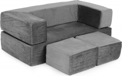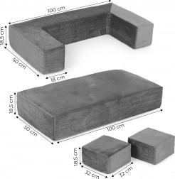Modulárna pohovka ECOTOYS je skvelým riešením pre detské izby a herne. Štyri penové diely s príjemným textilným poťahom možno skladať do klasickej sedačky, leňošky alebo uzavretého herného kútika. Ľahká konštrukcia podporuje samostatnosť a kreativitu – deti si môžu nábytok ľahko preskladať podľa nálady.