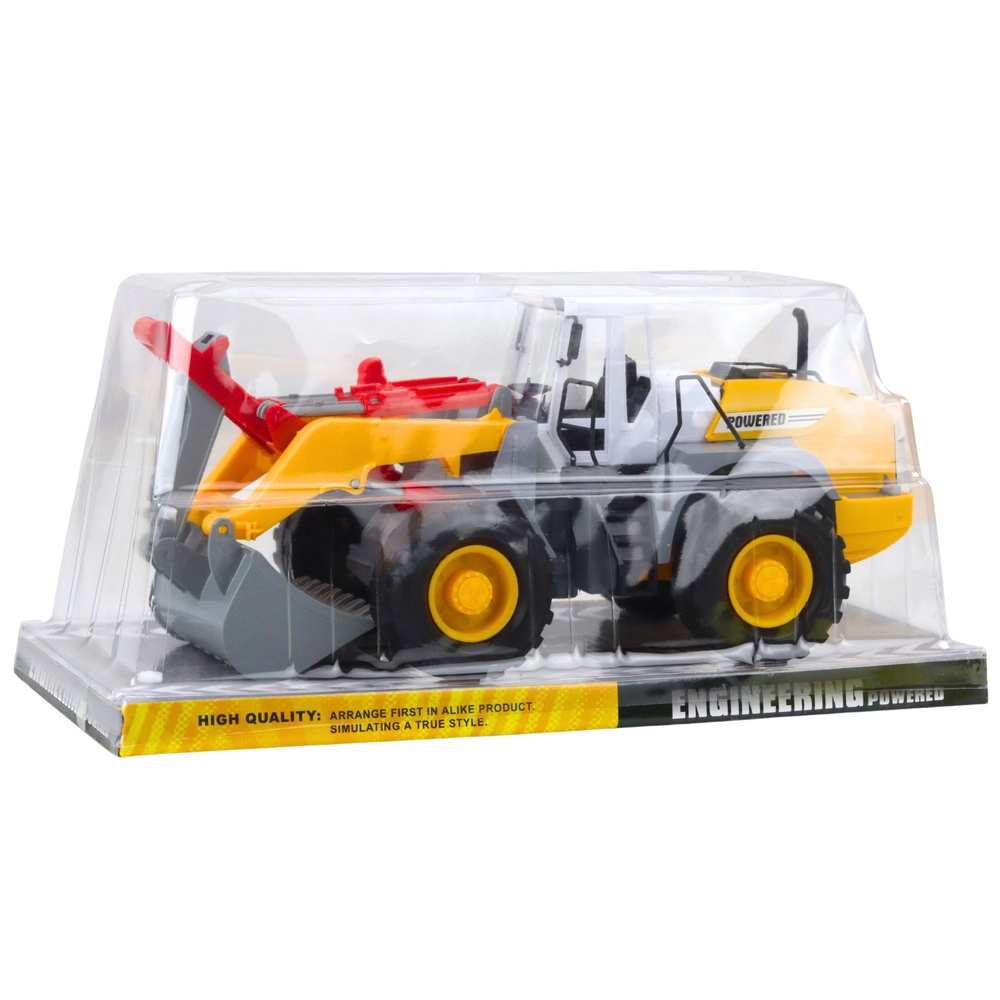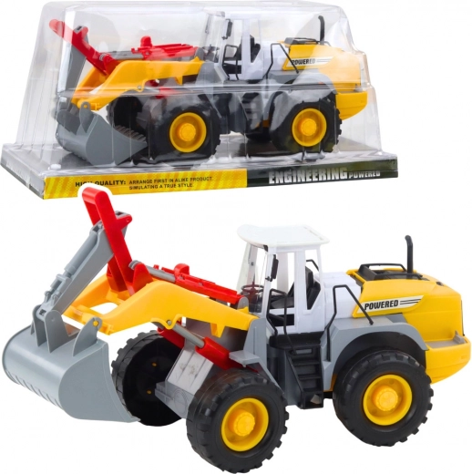Realistický stavebný nakladač–bager z kvalitného plastu poteší každého malého staviteľa. Vďaka pohonu zotrvačníkom a pohyblivému stredovému kĺbu sa ľahko ovláda, predná lopata a funkčný piest umožňujú naberanie aj zdvíhanie materiálu. Odolné prevedenie a detailné spracovanie zaručujú dlhú a bezpečnú hru doma aj na záhrade.
