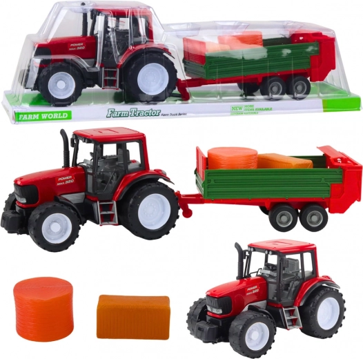 Objavte robustný farmársky set, ktorý poteší malých milovníkov vidieka. Detailne spracovaný červený traktor s veľkými kolesami a odnímateľným zeleným prívesom verne napodobňuje skutočné poľnohospodárske stroje. Súčasťou sú aj balíky sena, ktoré možno nakladať, prevážať a vykladať.