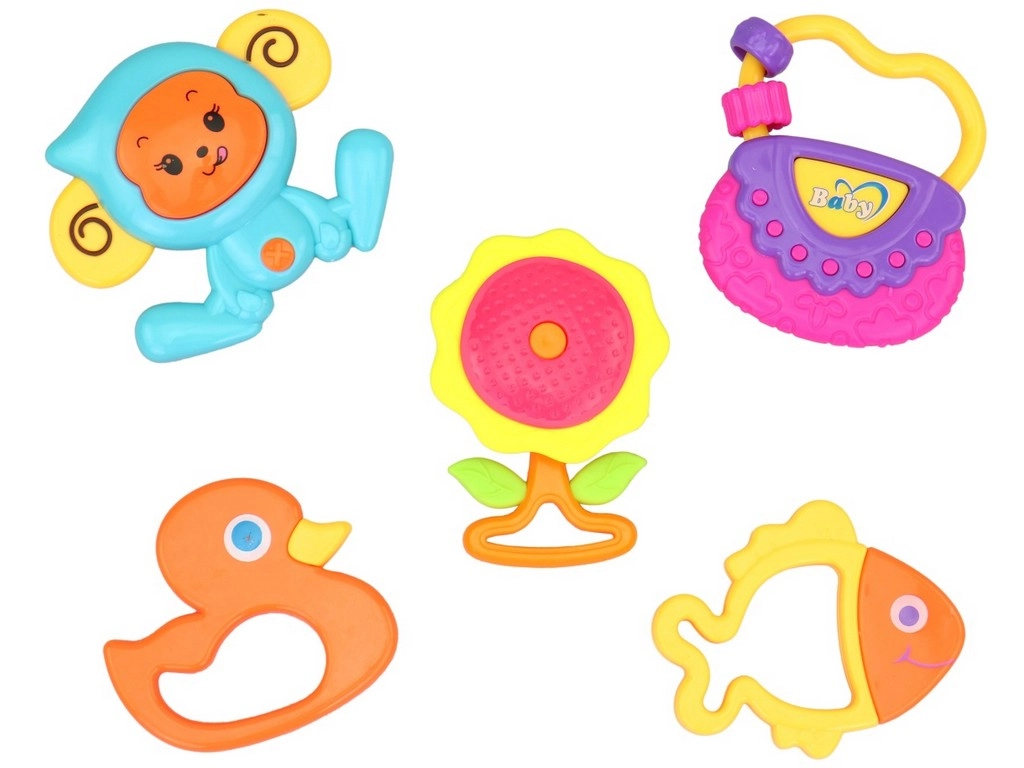 Táto univerzálna sada hrkálok poteší každé bábätko pestrými tvarmi a zvukmi. Ľahké a jednoducho uchopiteľné hrkálky stimulujú zmysly, rozvíjajú koordináciu oko–ruka a prinášajú upokojujúcu zvukovú odozvu pri každom pohybe.