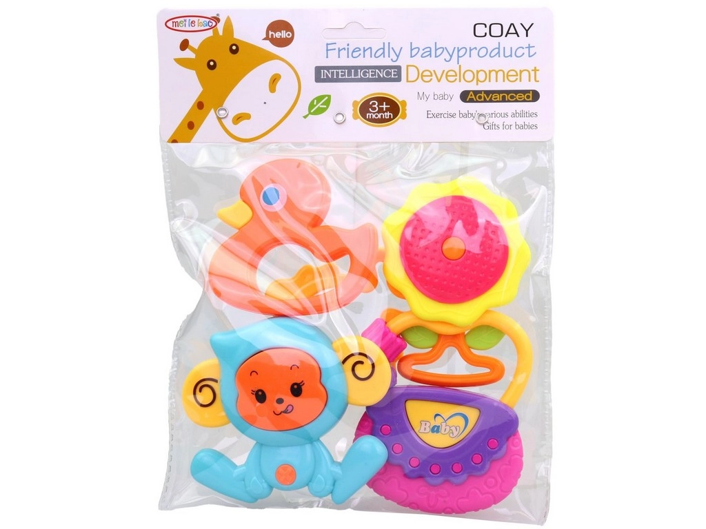 Hrkálky sú vyrobené z odolného plastu a vďaka kompaktným rozmerom 8,5 × 10 cm sa pohodlne držia aj tým najmenším rúčkam. Praktické balenie umožňuje mať hračky vždy poruke doma aj na cestách.