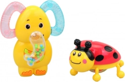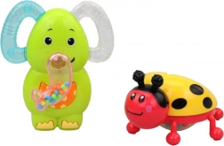Táto dvojica hrkaliek je navrhnutá pre najmenších objaviteľov od 3 mesiacov. Ľahký plast a ergonomický tvar umožňujú jednoduché uchopenie, zatiaľ čo jemný zvuk podnecuje sluch a prirodzenú zvedavosť dieťaťa. Kompaktná veľkosť 12 × 9 cm je ideálna doma aj na cesty.