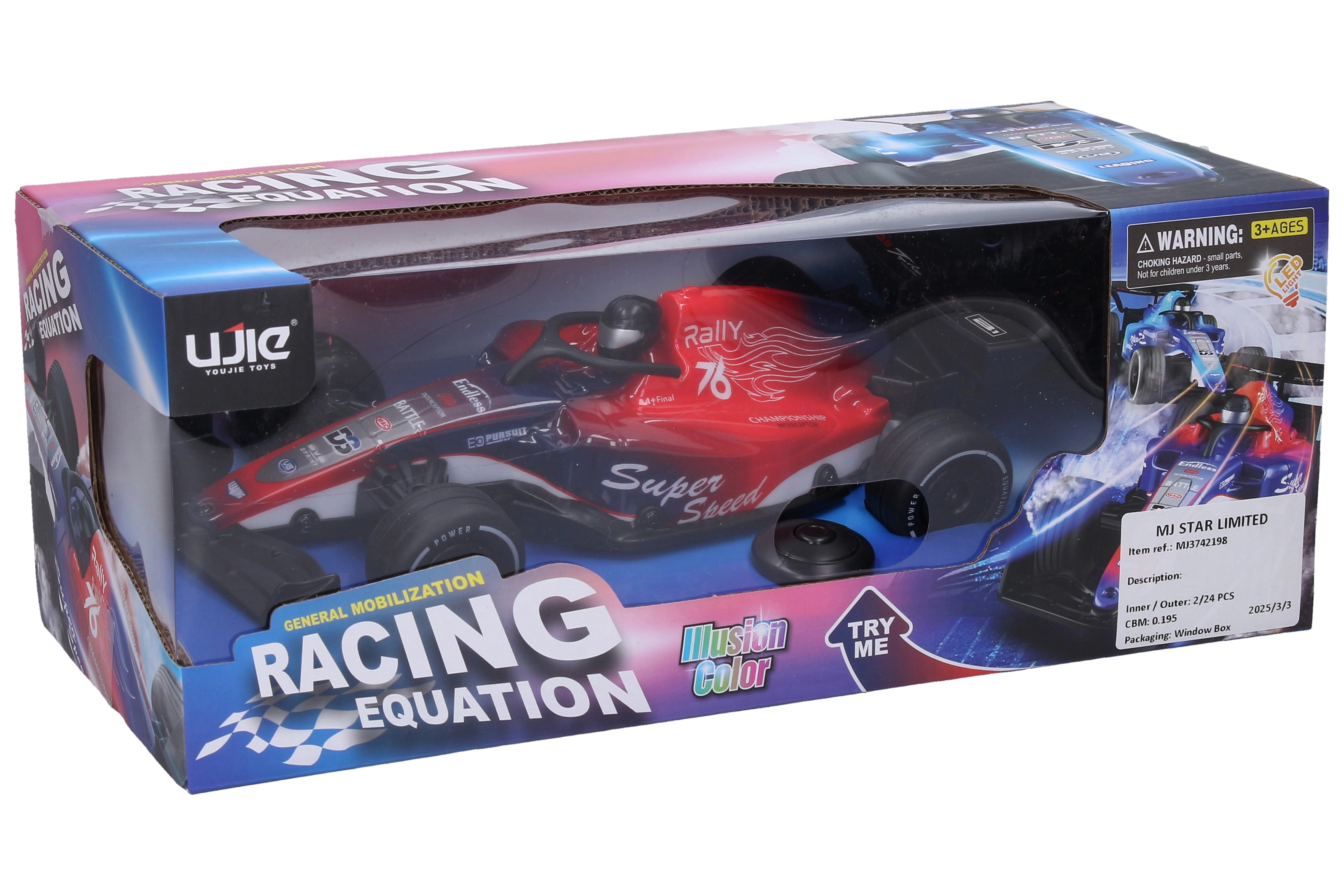 Svieťacia RC formula prináša skvelý pomer zábavy a jednoduchosti. Kompaktné rozmery 25,5 × 11,7 × 7,3 cm a prepínač ON/OFF na spodnej strane zaisťujú pohodlné používanie. Osvetlenie karosérie dodá jazde atraktívny vzhľad, ktorý zaujme doma aj vonku.