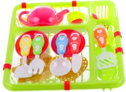 Detský plastový čajový set s praktickým odkvapkávačom poteší malé kuchárky aj kuchárov. Obsahuje kanvičku s pokrievkou, hrnčeky, tanieriky, misku a drobné doplnky ako lyžičky. Ideálny na hru na domácnosť, rozvíja fantáziu a jemnú motoriku. Kompaktné balenie s rozmermi cca 26 × 26 × 6 cm. Vek 3+.