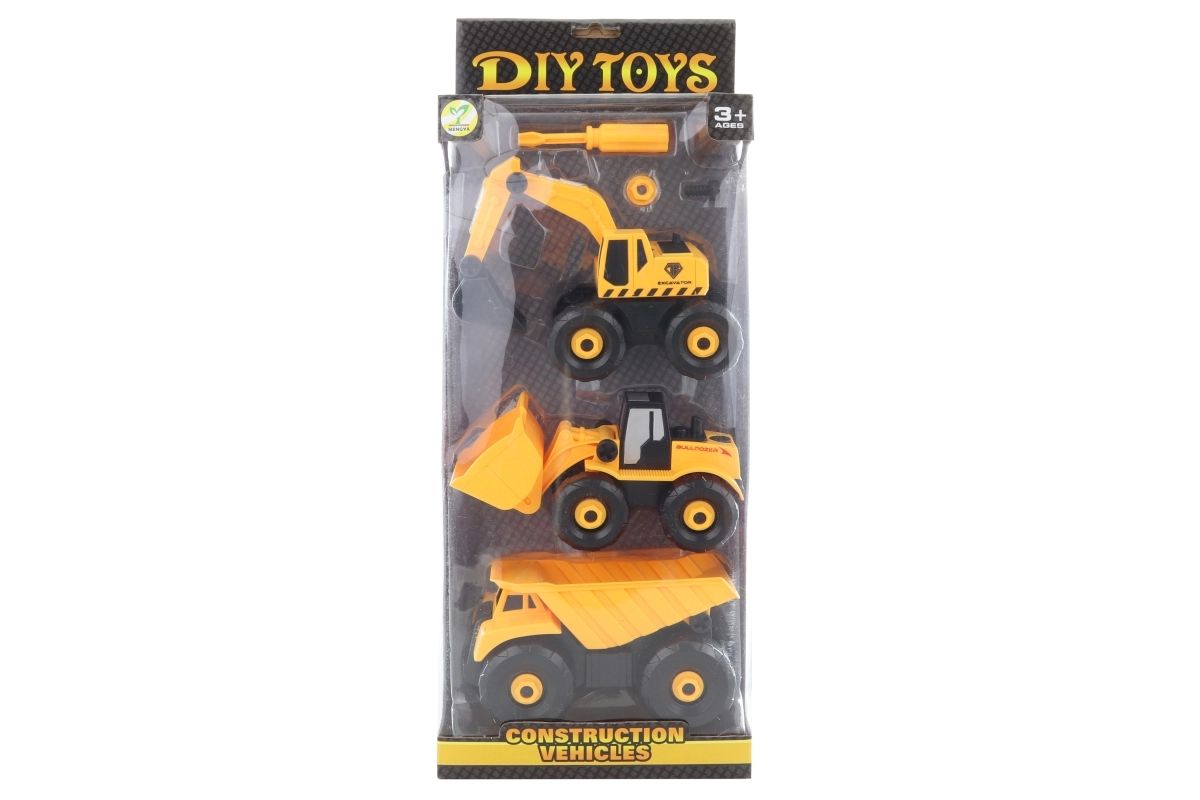 Zábavná stavebnica pre malých staviteľov: sada obsahuje bager, nakladač, sklápač a detský skrutkovač. Deti si vozidlá samy rozoberú a znova zložia, čím rozvíjajú jemnú motoriku, logické myslenie a trpezlivosť. Ideálny darček pre vek 3+.