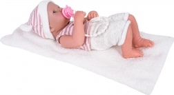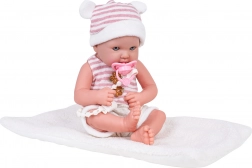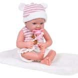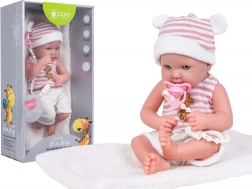 V balení nájdete všetko, čo deti k hre potrebujú: cumlík na šnúrke na upokojenie bábätka a mäkkú dečku na prebaľovanie či zaspávanie. Bábika je vhodná od 3 rokov, má pohodlne vyzliekateľné oblečenie (čiapočka, top a kraťasy) a ľahko sa udržiava.