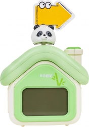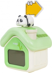 Roztomilý detský budík v tvare domčeka s pandou kombinuje čitateľné digitálne zobrazenie, tichú prevádzku, nočné svetlo a alarm s funkciou odloženia. Ponúka tiež meranie teploty, časovač a indikátor batérie. Vďaka veľkej kapacite akumulátora s USB‑C nabíjaním je ideálny pre deti od 3 rokov a skvelo doplní každú detskú izbu.