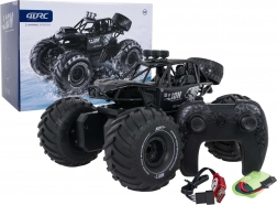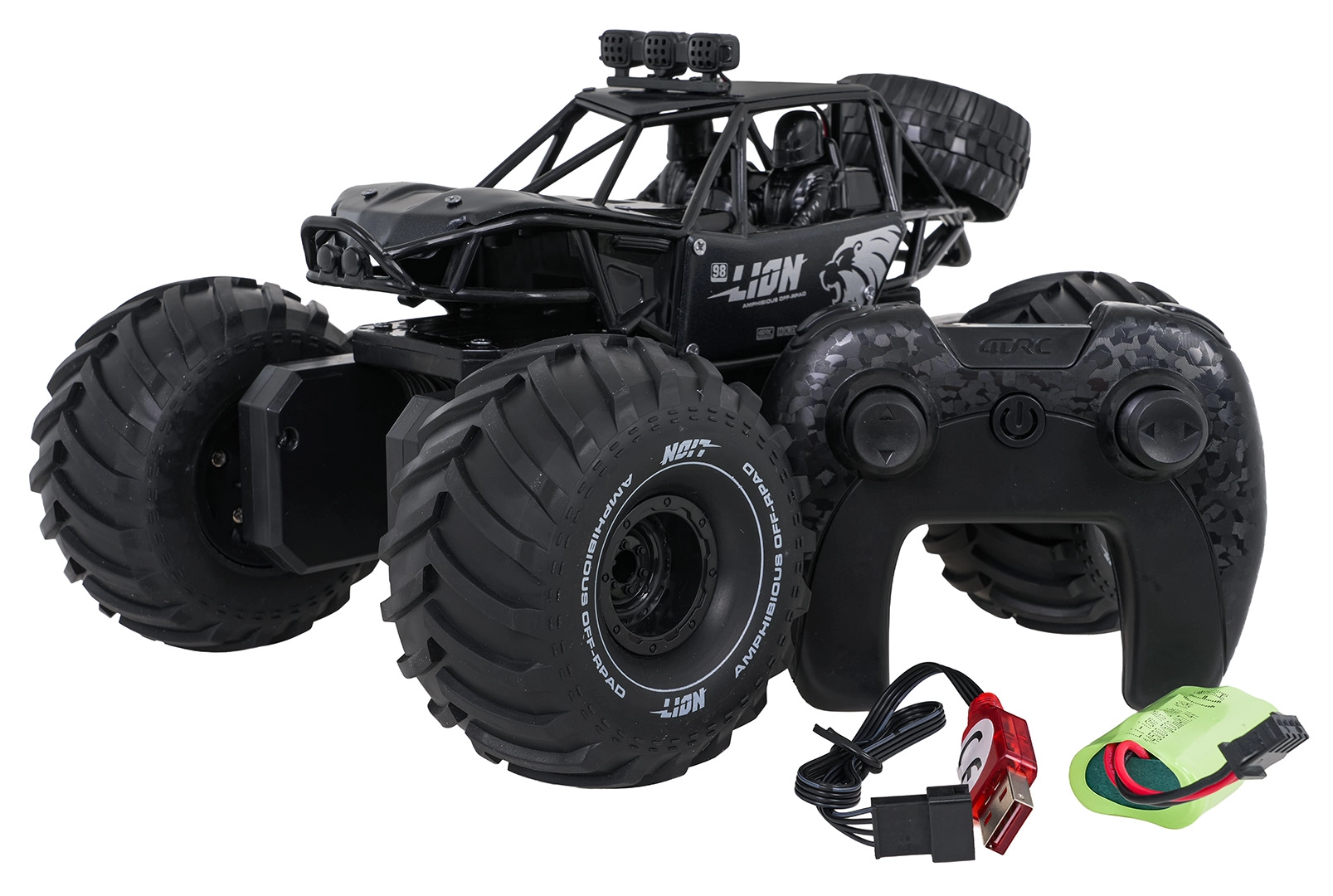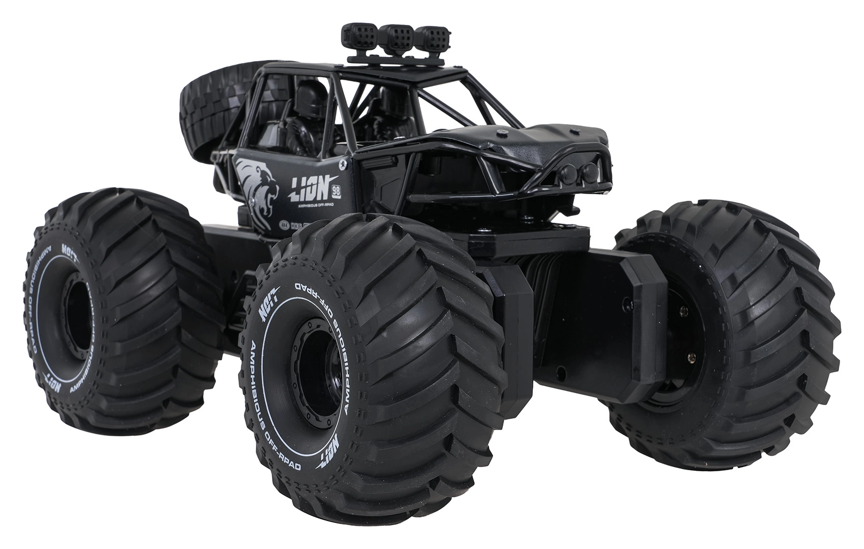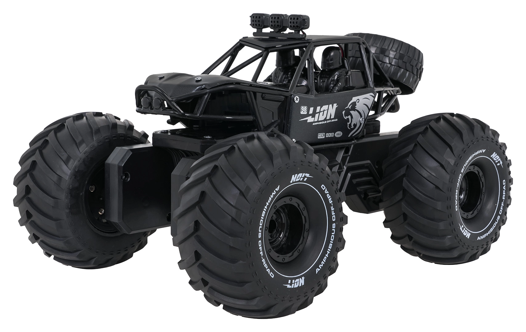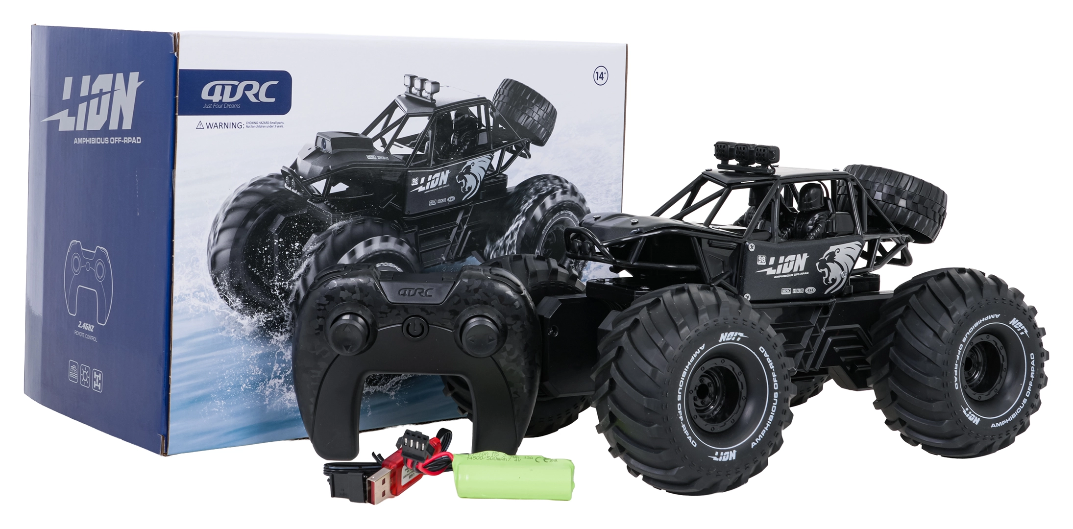 RC terénne auto LION v čiernej farbe kombinuje robustnú kovovú karosériu s pohonom 4x4 pre istotu v teréne. Veľké, protišmykové kolesá s výrazným behúňom zvládajú štrk, trávu aj nerovnosti, zatiaľ čo antikoliszná konštrukcia chráni voz pri nárazoch. Ovládanie na frekvencii 2,4 GHz zabezpečuje stabilný dosah bez rušenia.