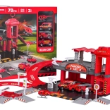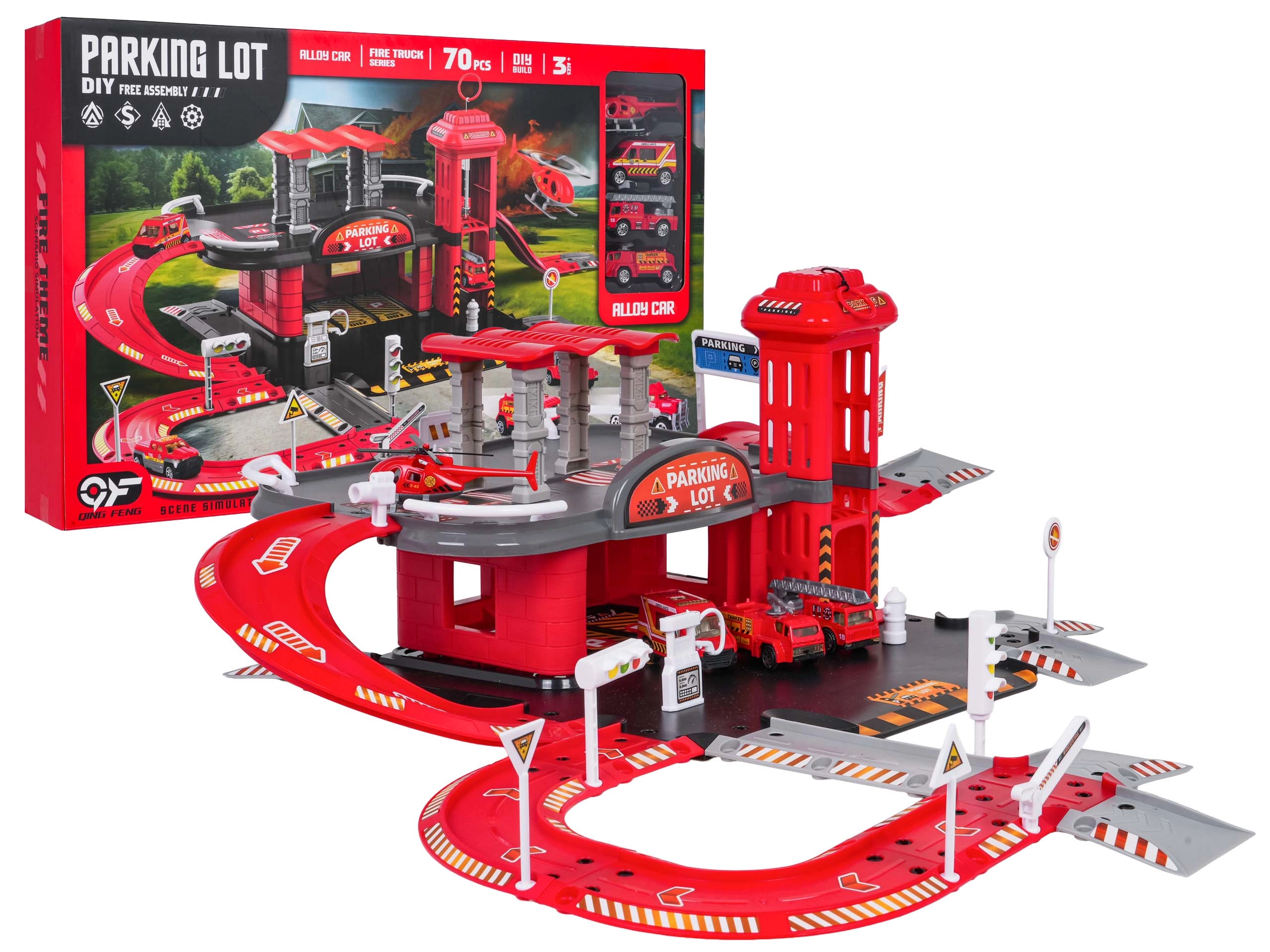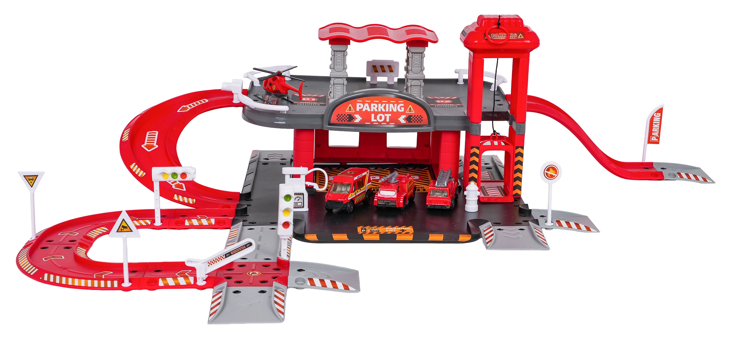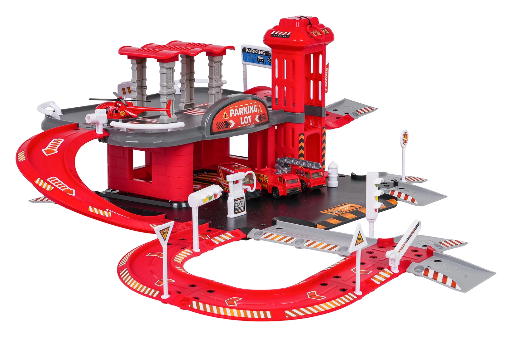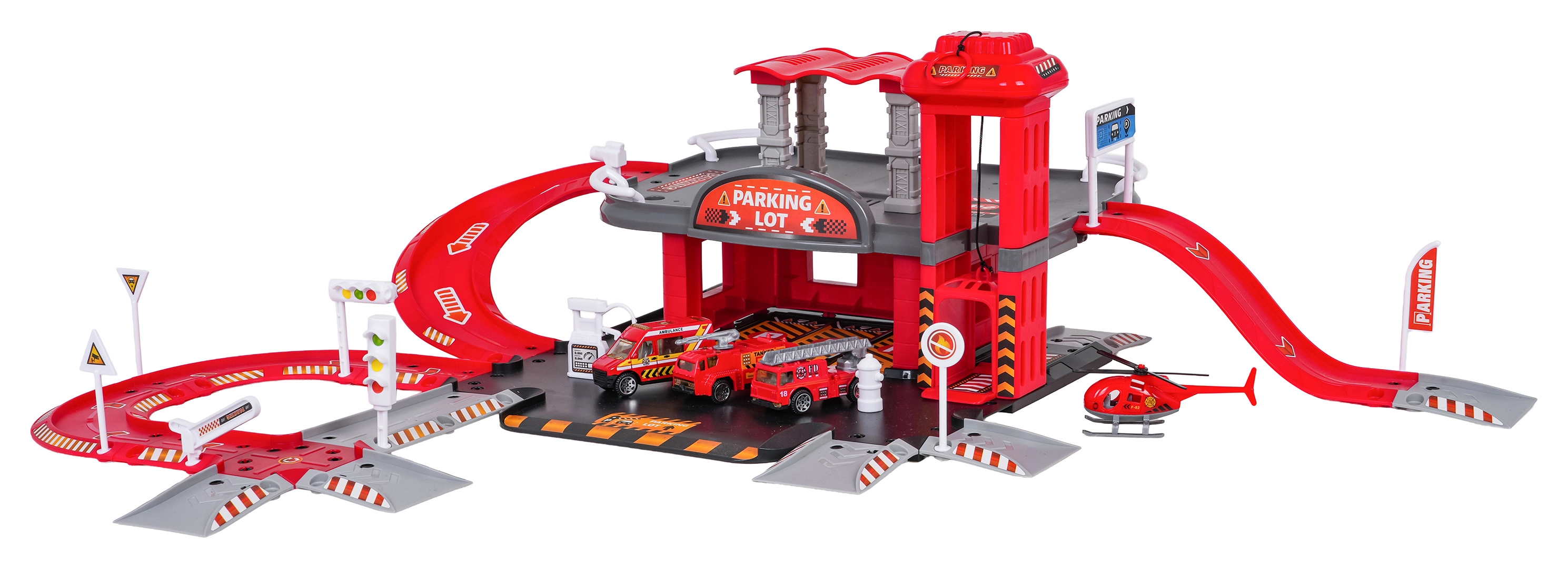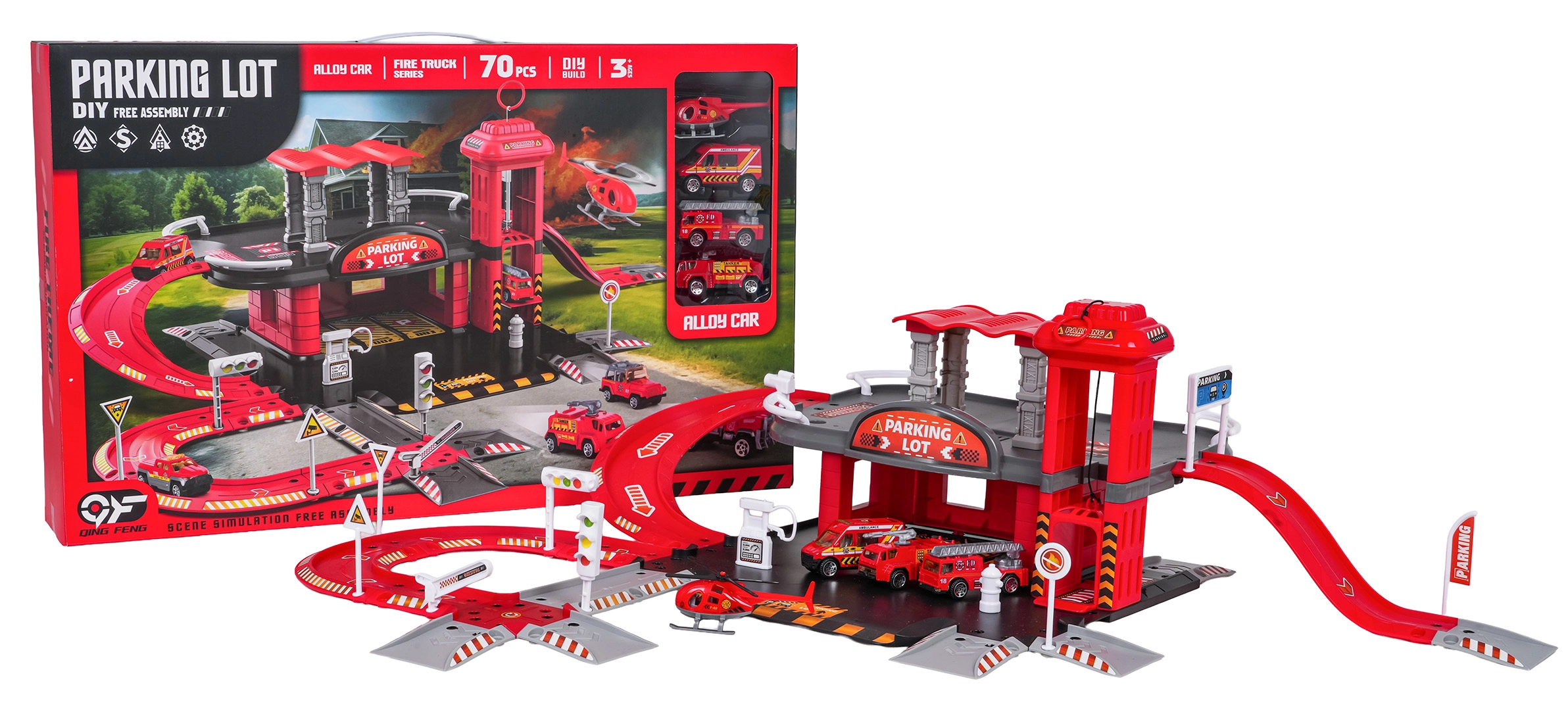 Tento detailne spracovaný set hasičskej stanice spája zábavu a rozvoj zručností. Deti môžu tankovať na benzínke, jazdiť po ceste, vyviezť voz manuálnym výťahom na poschodie a parkovať na určených miestach. Z horného poschodia sa vozidlá vracajú výťahom alebo sa spúšťajú nadol po závitovej rampe.
