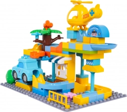 Táto veľká stavebnica umožní deťom postaviť vlastnú policajnú stanicu so šmykľavkou, rampami a pristávacou plochou pre vrtuľník. Ľahko spájateľné kocky držia pevne pokope a vďaka jasným farbám prirodzene podnecujú detskú predstavivosť a sústredenie.