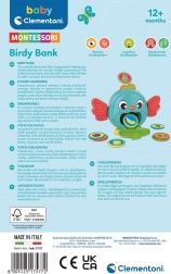 Roztomilá pokladnička v tvare vtáčika od značky Clementoni pomáha deťom hravou formou rozvíjať finančnú gramotnosť. Má praktický otvor na vhadzovanie mincí, jednoduché vysypanie úspor a je vyrobená z kvalitných a bezpečných materiálov. Skvele sa hodí ako originálny darček aj ako dekorácia do detskej izby.