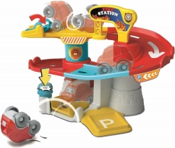 Objavte herný set CLEMENTONI BABY, ktorý spája hasičskú stanicu s garážou a dynamickou šmýkačkou. Dve salto stanice zaistia, že každá jazda autíčka bude iná – stačí stlačiť tlačidlo alebo pohnúť pákou a auto sa zábavne prevráti či urobí salto. Prostredie je navrhnuté pre malé ruky a bezpečnú hru bez ostrých hrán.
