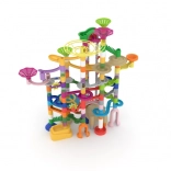 Táto veľká guľôčková dráha prináša pestrú paletu dielov na stavbu vysokých veží, dynamických zjazdov a zábavných tunelov. Vďaka ľahko kombinovateľným segmentom deti trénujú trpezlivosť, kreativitu a technické myslenie, zatiaľ čo sledujú, ako sa guľôčky svižne rútia hotovou traťou.