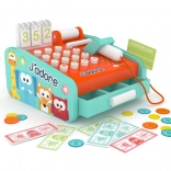 Pokladňa ponúka tlačidlá, výsuvnú zásuvku na peniaze a doplnky, s ktorými môžu deti prijímať platby a vydávať „vydanie“. Vyrobená z ekologických a bezpečných materiálov, odolná na každodenné hranie.