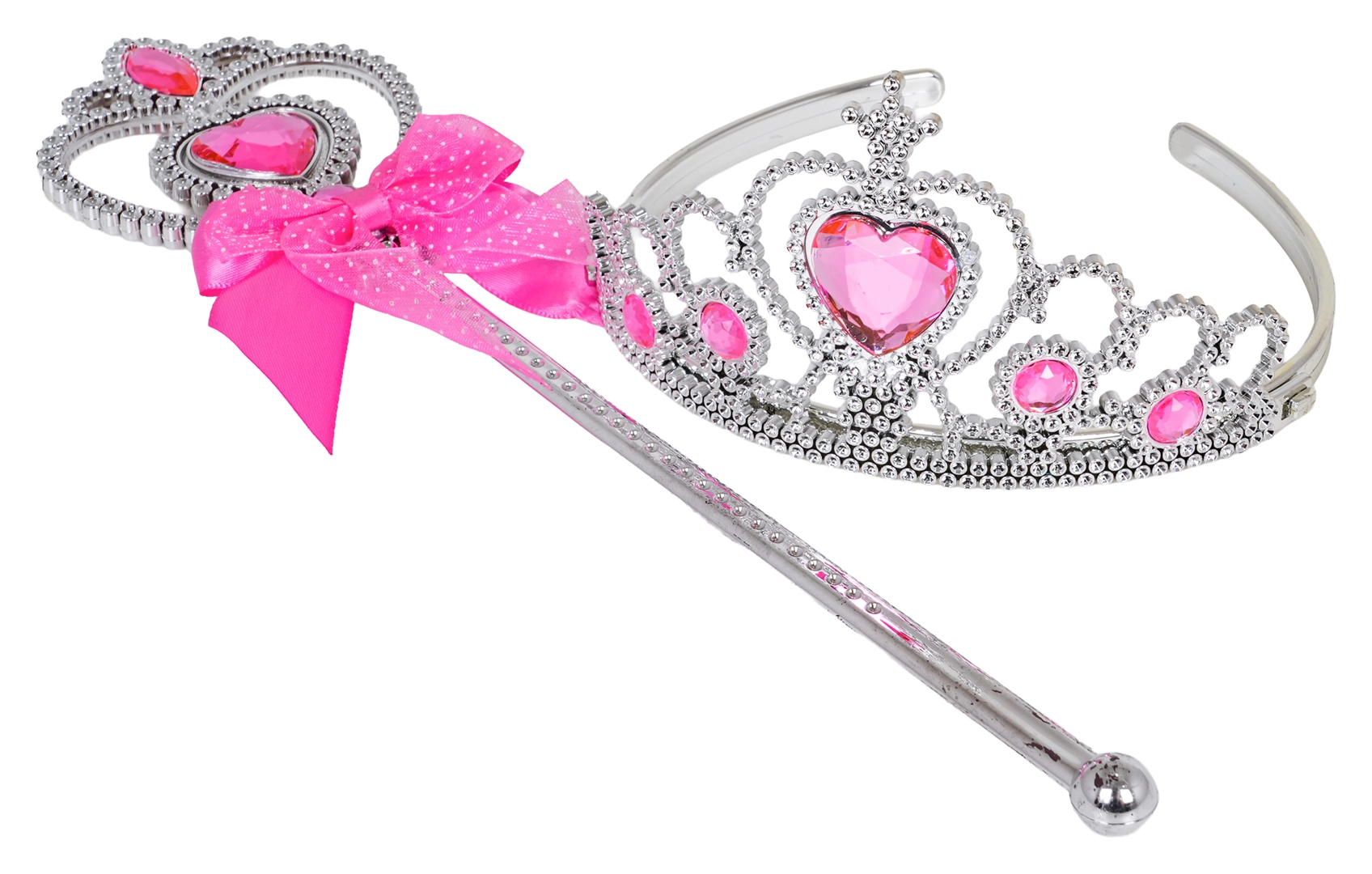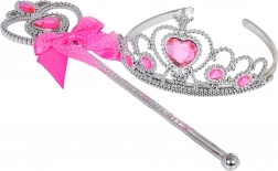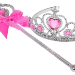Strieborná korunka s ružovými kamienkami a ladiaca palička dodajú kostýmu kráľovský lesk a podporia fantáziu pri rolových hrách.