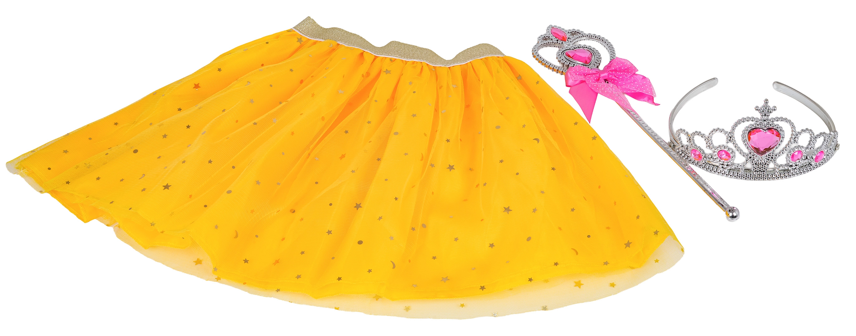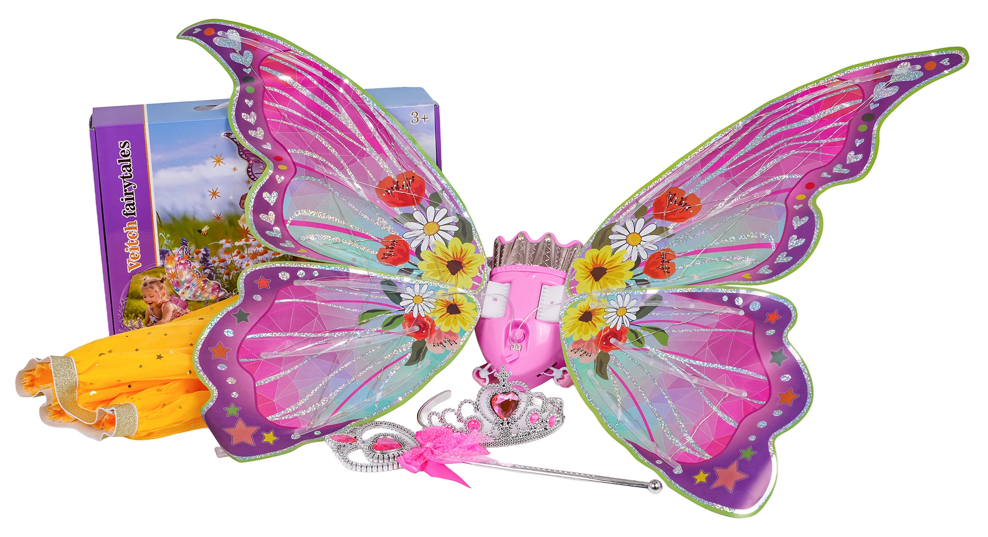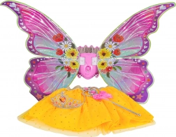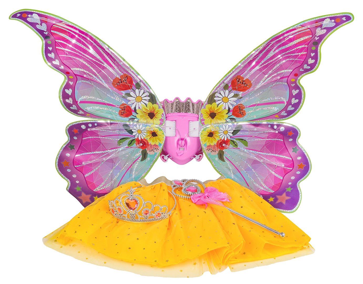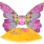 - motýlie krídla so svetlom a zvukom, žltá sukňa, čarovná palička, korunka
