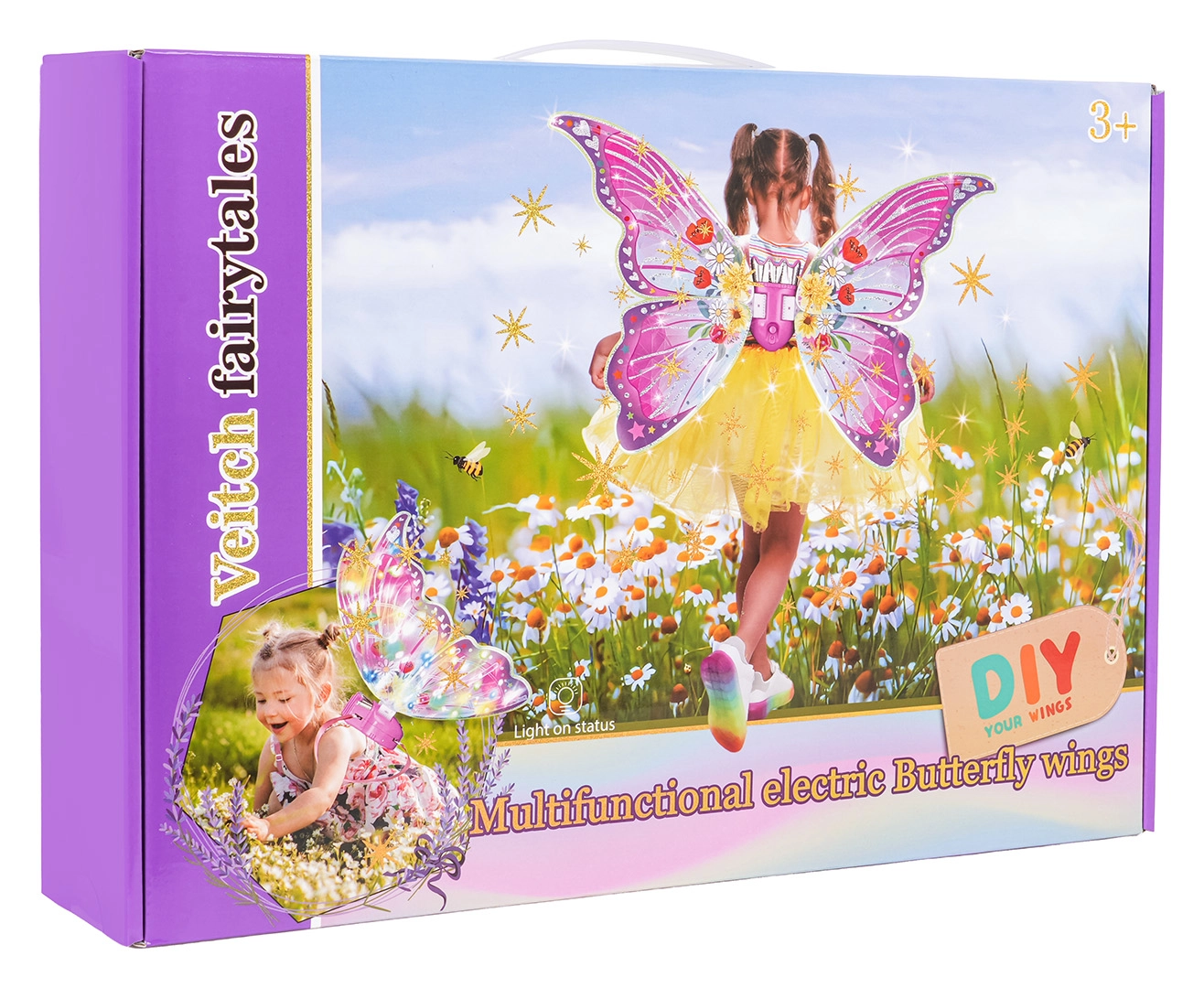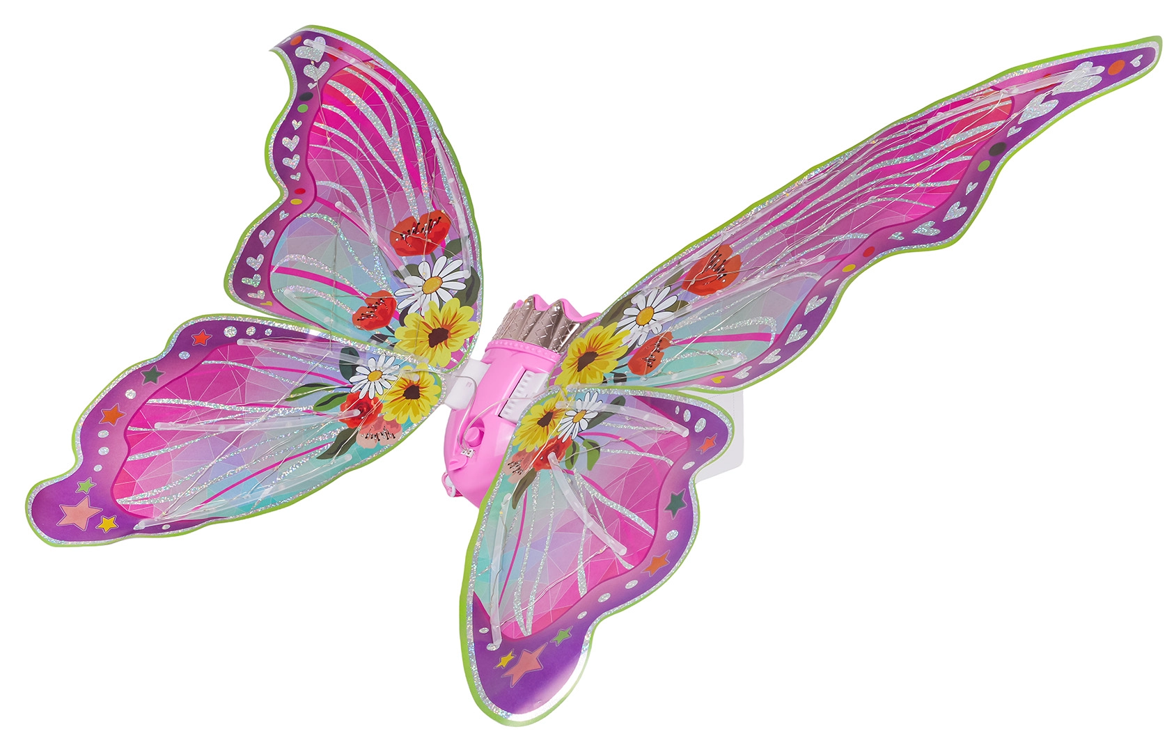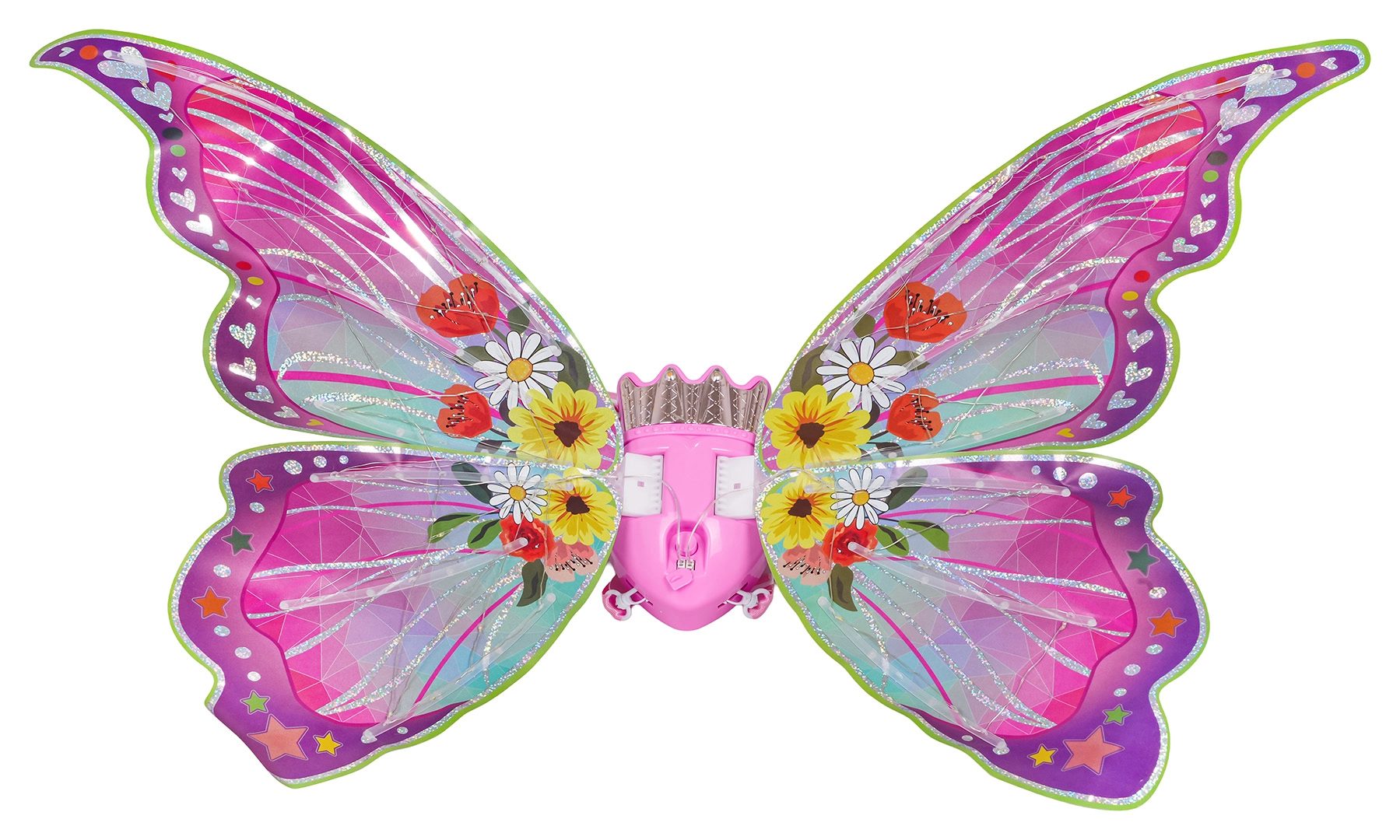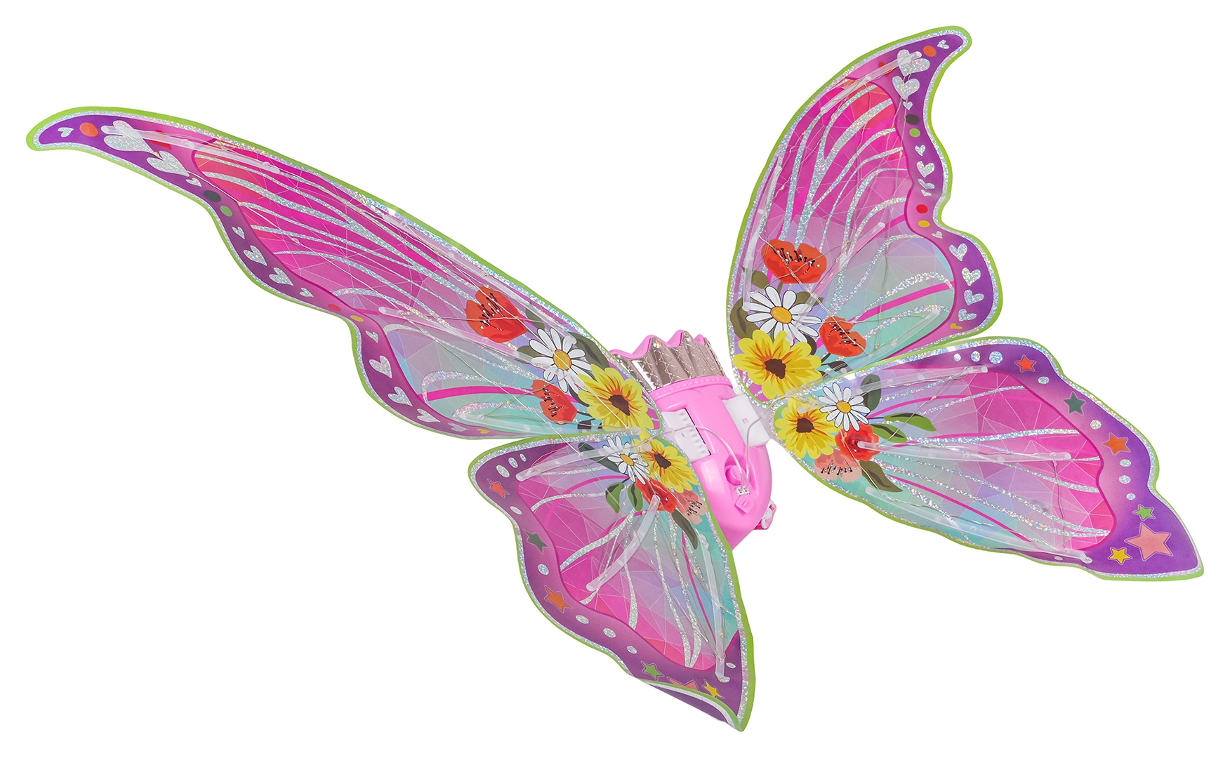 Motýlie krídla ponúkajú niekoľko režimov: hudba + mávanie + svetelné efekty, mávanie + svetlá, mávanie + blikanie svetiel a samostatné mávanie. Nastaviteľné popruhy zaistia pohodlné upevnenie, ľahká konštrukcia a pestrofarebné LED svetielka dodajú každej hre čarovnú atmosféru.