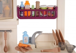 Z kohútika skutočne tečie voda, zatiaľ čo chladnička, rúra, skrinky a police pojmú všetky doplnky a udržia herný kút v poriadku.