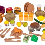 Hrnce, panvica, kanvička, riad, príbory, koreničky, potraviny, menu karty aj odpadkové koše – všetko, čo malí kuchári potrebujú.