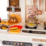 Podsvietené horáky so zvukmi varenia a vyprážania dopĺňa para z hrnca – deti zažijú autentickú atmosféru pri každom recepte.