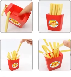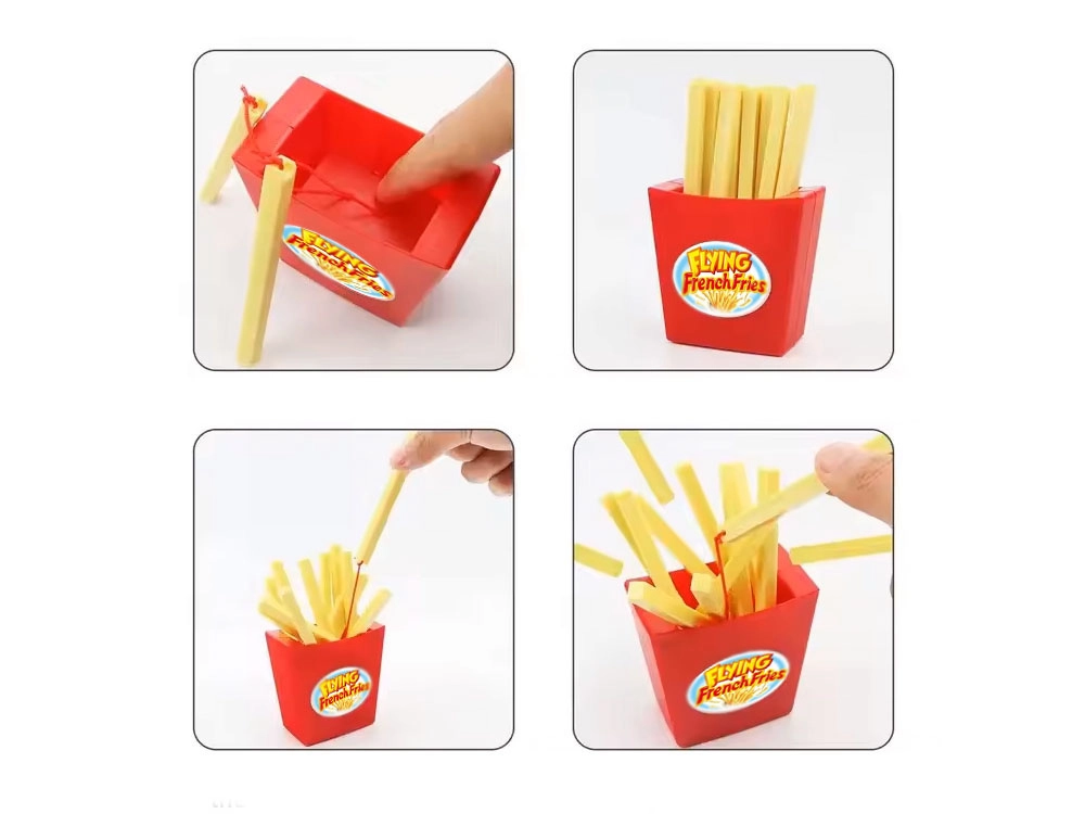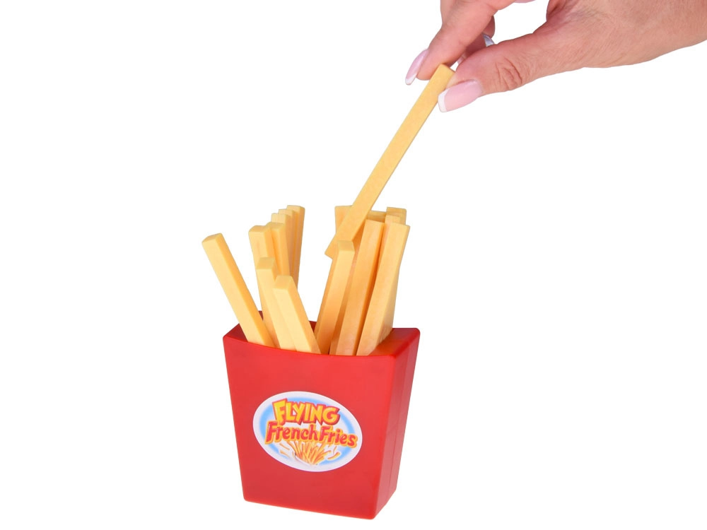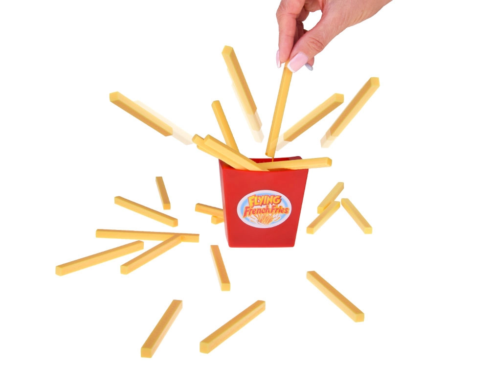 Hra Lietajúce hranolky je ideálnou voľbou na rodinné večery, oslavy narodenín aj detské párty. Stlačte mechanizmus v štýlovom červenom kelímku, naplňte ho hranolkami a hráči si ich postupne vyťahujú po jednej. Kto spustí vystrelenie hranoliek, prehráva kolo – jednoduché, napínavé a zaručene zábavné.