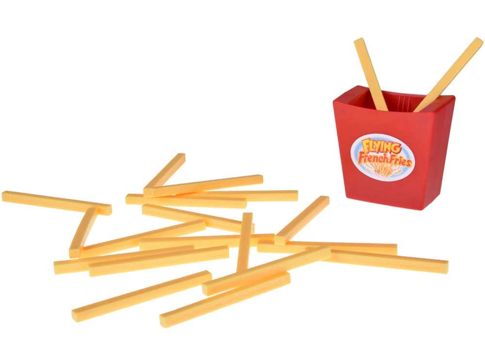 Stlačte mechanizmus, naplňte kelímok a vyťahujte hranolky po jednej. Jediný chybný ťah spustí vystrelenie a postará sa o salvy smiechu.