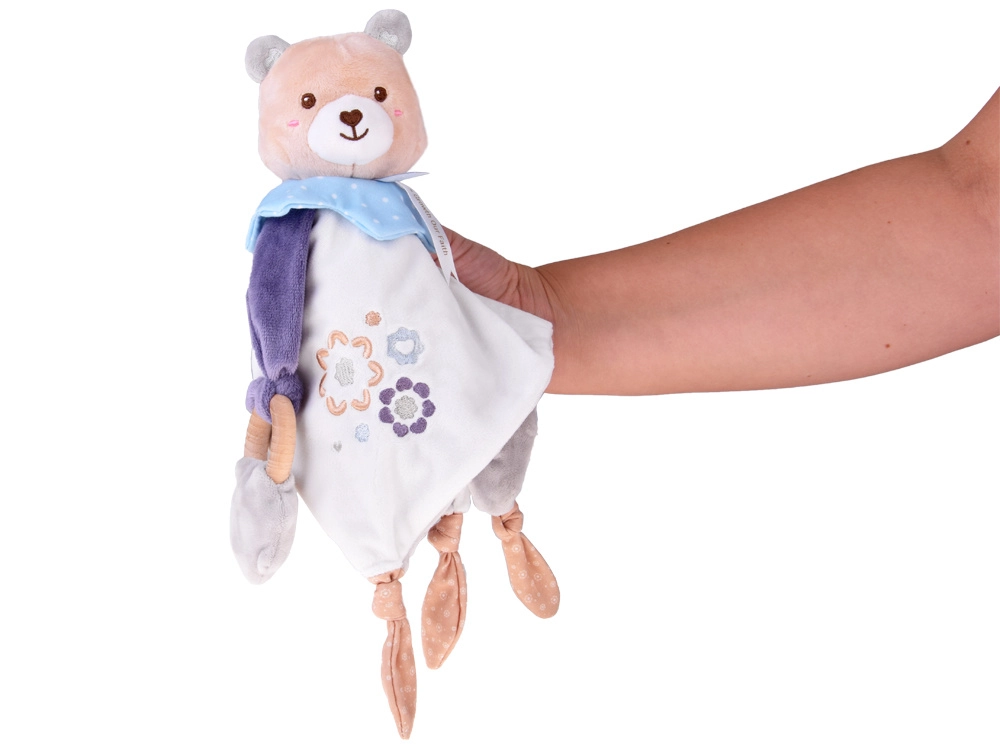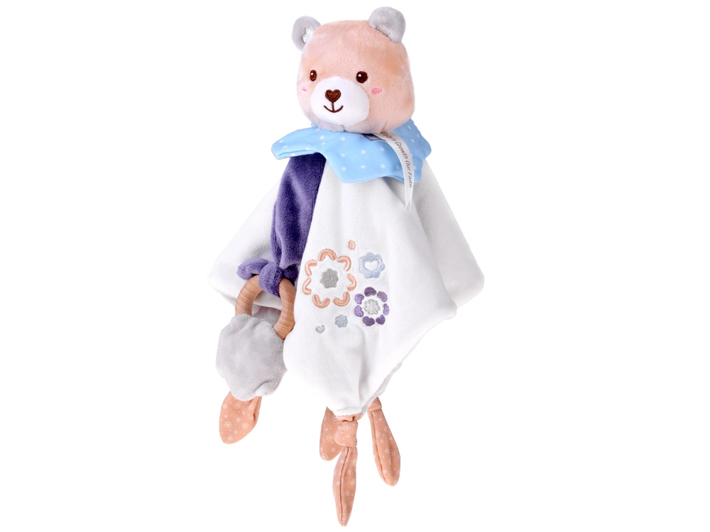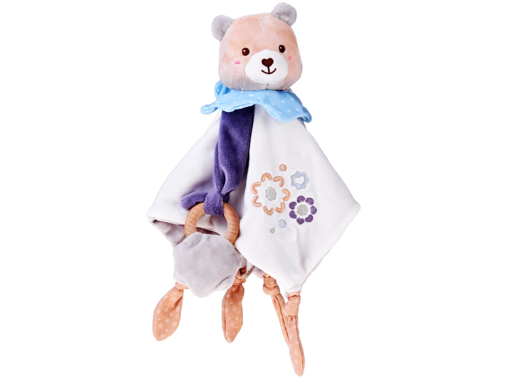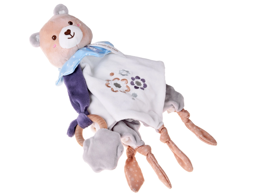 Roztomilý maznáčik pre bábätká spája plyšového medvedíka, mäkkú ukľudňujúcu dečku a drevené hryzátko v jednom. Ponúka rôzne textúry, vyšívané detaily a uzlíky na ľahké uchopenie, ktoré podporujú sensomotorický rozvoj a prinášajú pocit bezpečia od prvých dní života.