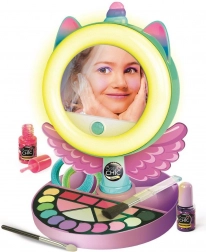 Štýlová make-up sada s osvetleným zrkadielkom a praktickým stojanom pre malé stylistky. Obsahuje paletku na líčenie, priehradky na laky na nechty a doplnky. Kozmetika je bezpečná, testovaná, nespôsobuje alergie a ľahko sa zmýva vodou. Pre zrkadielko sú potrebné 3× AAA batérie (nie sú súčasťou balenia).